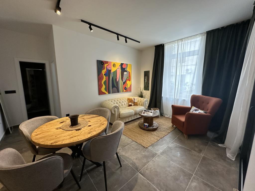 Apartamenty Urban zlokalizowane są przy cichej ulicy. Budynek znajduje się zaledwie 5 minut spacerem od zabytków kultury, sklepów, restauracji, targowisk, targowisk i dworca autobusowego. W budynku znajdują się 4 mieszkania: Urban Black, Urban Green, Urban Grey, Urban Living. Zarezerwowany parking w bezpośrednim sąsiedztwie. W budynku znajduje się pomieszczenie z pralką i środkami czystości.