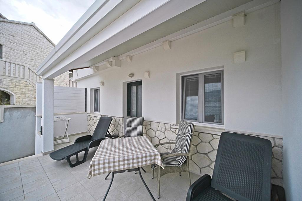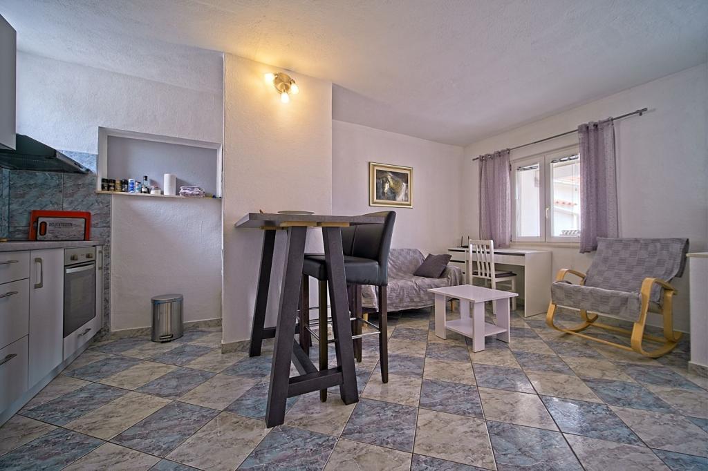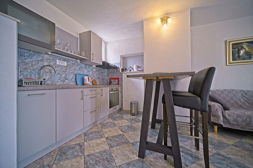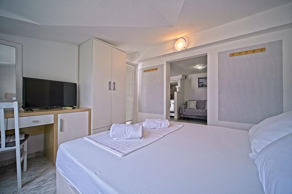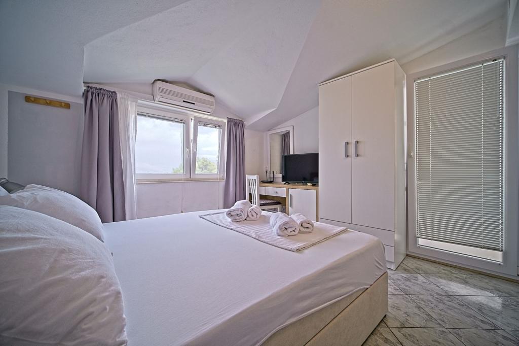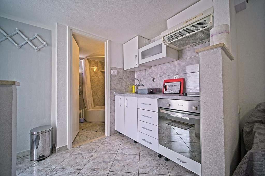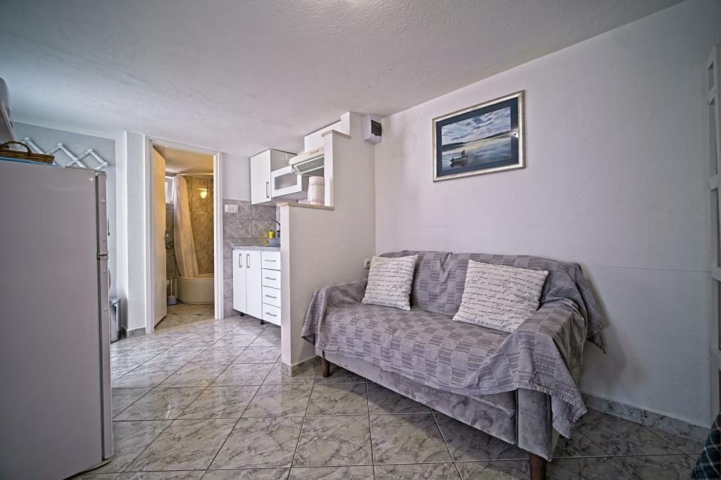 Apartamenty położone są w pierwszym rzędzie nad morzem i oferują idealne połączenie komfortu i nowoczesnego stylu. Znajdują się w odnowionym i w pełni wyposażonym domu rodzinnym, gdzie można cieszyć się bliskością morza i zachwycającym widokiem. Oferujemy dwa wyjątkowe typy zakwaterowania: przestronny apartament 2+1, idealny na rodzinne wakacje, oraz urokliwy apartament dla dwóch osób. Każdy apartament wyposażony jest w bezpłatną klimatyzację, telewizję satelitarną i internet Wi-Fi.
