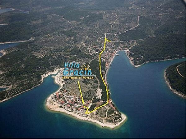Willi kamienia dalmatyńskiej w atrakcyjnym i spokojnym miejscu w Povlja na wyspie, w pobliżu plaży i 300 m od centrum. Trzy sypialnie i jeden apartament znajduje się na ziemi. Wszystkie apartamenty są przeznaczone dla 2 osób dorosłych i maksymalną pojemność 3 osoby dorosłe lub 2 dorosłych i 2 dzieci do lat 12. Osoby dorosłej lub dwojga dzieci we wszystkich apartamentach na kanapie w salonie. Wszystkie apartamenty mają oddzielne wejście i samodzielny taras z salonu, sypialni z podwójnym łóżkiem, kuchnia z jadalnią i salon w jednym pomieszczeniu, łazienka z prysznicem. Telewizja satelitarna, klimatyzacja, bezprzewodowy dostęp do Internetu i sejf należą do wyposażenia standardowego za cały apartament i nie jest naładowana, lub podatków lokalnych. Możliwość korzystania z wspólnego pralka we wspólnym obszarze na poziomie gruntu jest opłata dodatkowa.