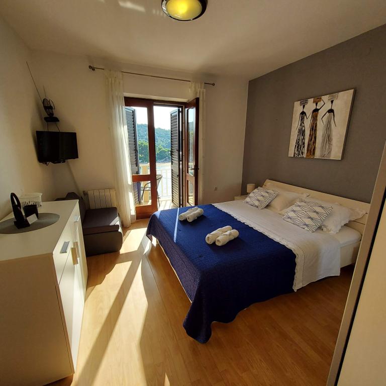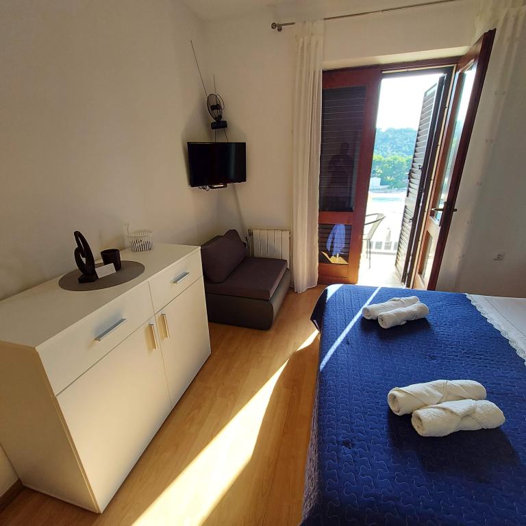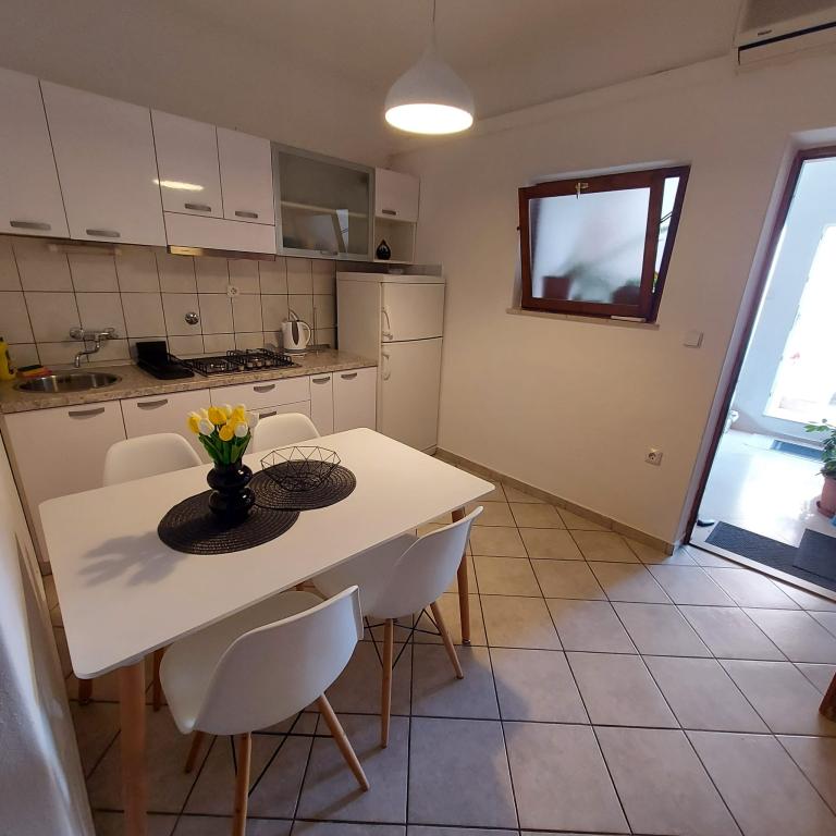 Dom oddalony jest ok. 50 m od morza, najbliższa restauracja ok. 50 m, najbliższy sklep spożywczy ok. 50 m Dom w starym stylu dalmatyńskim, w centrum, z pięknym widokiem na morze , w cichym i spokojnym miejscu, blisko plaży (5-10 minut spacerkiem), na podwórku domu znajduje się sad, podwórko jest w cieniu zieleni, dom posiada własny parking. Darmowe Wi-Fi, klimatyzacja. Dodatkowe usługi: pranie można wyprać u gospodarza po uzgodnieniu, gospodarz prowadzi sprzedaż produktów spożywczych własnej produkcji. (oliwa z oliwek, brandy)