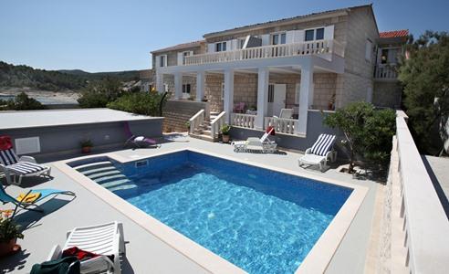 illa Vania to piękny kamienny dom z basenem, położony nad morzem w Povlja, spokojnej miejscowości turystycznej położonej 40 km na wschód od Supetaru na wyspie Brac. Dom położony jest w spokojnej części miejscowości Povlje, zaledwie 20 m od morza, kamienistych i żwirowych plaż i zaledwie 100 m od zatoki Tičja luka ze żwirową plażą idealną dla dzieci. Od centrum i wszystkich głównych obiektów turystycznych dom jest oddalony o około 800m. Do centrum można dojechać samochodem lub wzdłuż wybrzeża, które zdobi kilka pięknych plaż. Zakwaterowanie jest odpowiednie na rodzinne wakacje w Povlja, wakacje większej grupy, a także dla miłośników sportów wodnych i wakacji rekreacyjnych. Dom apartamentowy Villa Vania oferuje zakwaterowanie w 5 nowo wyremontowanych, klimatyzowanych apartamentach, z których każdy może pomieścić 2-3 i 4 osoby. Każdy apartament zawiera wyposażoną kuchnię z salonem, jedną lub dwie sypialnie, łazienkę (WC / prysznic / wanna) i duże tarasy z pięknym widokiem na morze. We wspólnym pomieszczeniu centralnym dostępna jest pralka.