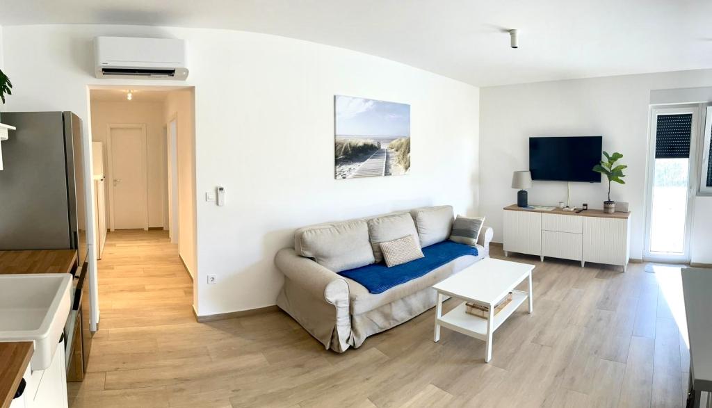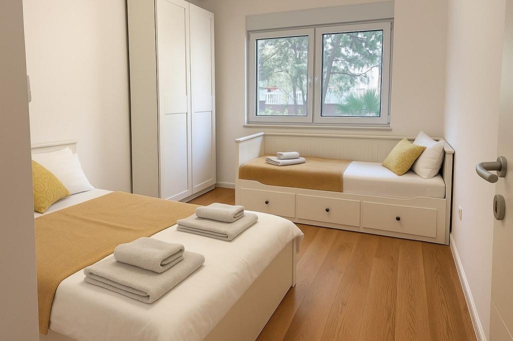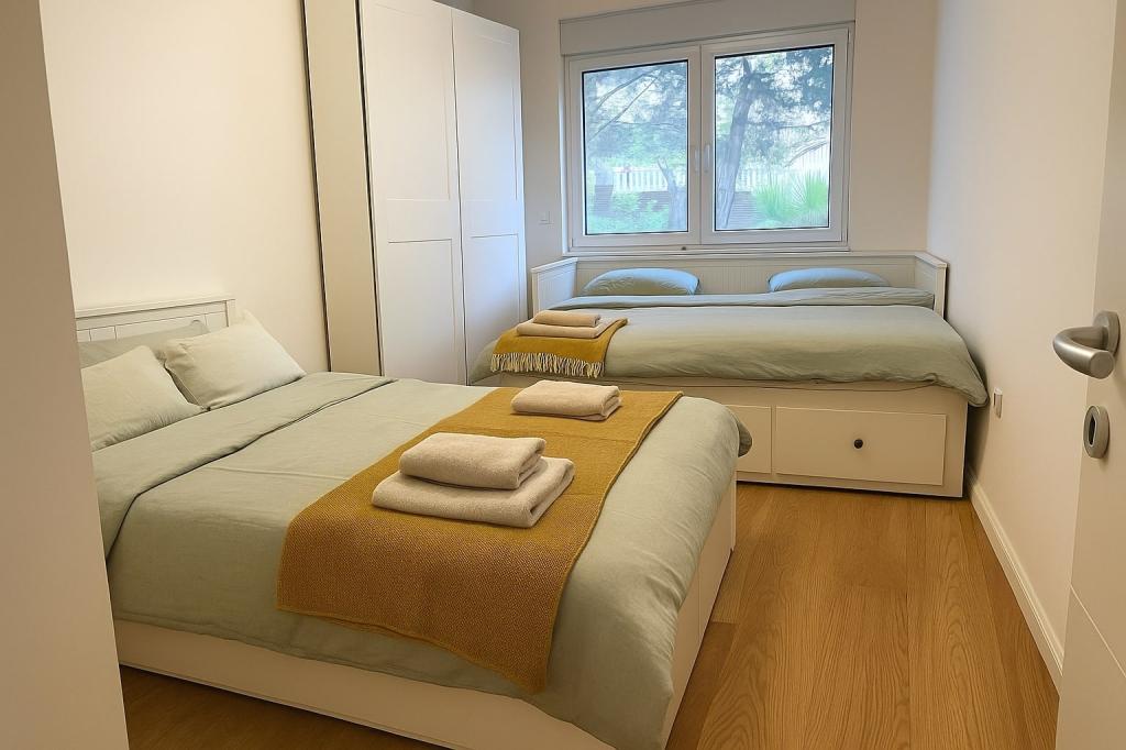 Witamy w Apartamencie Maris! Nasz nowy apartament z pięknym widokiem na morze znajduje się zaledwie 70 metrów od pięknej plaży w Dubrowniku, otoczonej palmami. W niecałą minutę można dojść spacerem do krystalicznie czystego morza lub odpocząć w jednej z pobliskich kawiarni i restauracji. Apartament posiada dwie wygodne sypialnie, w pełni wyposażoną kuchnię oraz przestronny salon urządzony w jasnych, nadmorskich barwach z dodatkiem śródziemnomorskich detali. To idealne miejsce na relaksujący i przyjemny urlop. Każdy pokój posiada własną klimatyzację. Dla Państwa wygody udostępniamy bezpłatne miejsce parkingowe. Apartament położony jest w spokojnej okolicy, idealnej na rodzinne wakacje. Sklep oddalony jest zaledwie o 5 minut spacerem. Niedaleko, zaledwie kilka minut spacerem, znajduje się piekarnia ze świeżym pieczywem i stoisko z lokalnymi owocami i warzywami.