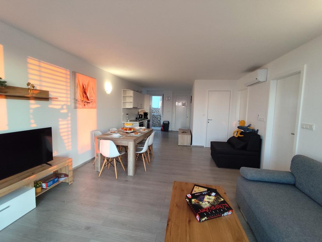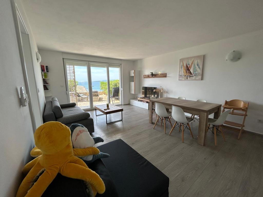 Apartament MORE I MIR położony jest w spokojnej części miejscowości Povljana, na półwyspie Rastavac, zaledwie 150 metrów od morza i piaszczystej plaży Trokut. Apartament znajduje się na parterze i jest w pełni wyposażony we wszystkie udogodnienia zapewniające przyjemny wypoczynek. Obiekt dysponuje 2 sypialniami z dwiema łazienkami, salonem i kuchnią. Dodatkowe łóżka w pokoju dziennym (rozkładana sofa i fotel). Mieszkanie jest w pełni wyposażone w sprzęt AGD, 3 klimatyzatory, 3 telewizory. Użytkownicy apartamentów mają do dyspozycji bezpłatny parking i internet, basen, możliwość korzystania z grilla, prysznic zewnętrzny oraz wspólną strefę zabaw (zjeżdżalnia, tenis stołowy itp.). Apartament posiada prywatny taras i ogródek z leżakami i miejscami do siedzenia, z widokiem na morze, 1. rząd. W bezpośrednim sąsiedztwie znajduje się pole namiotowe, piekarnia, sklep i restauracja. Povljana oferuje rodzinom doskonałe warunki do wypoczynku dzięki pięknym piaszczystym i kamienistym plażom oraz czystemu, płytkiemu morzu. Centrum miejscowości oddalone jest o 3,6 km.