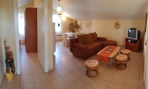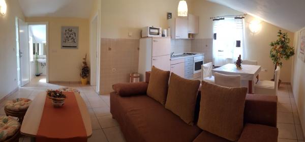 Apartament Oleander (51 m2) składa się z otwartej przestrzeni z salonem (dostawka dla 2 osób), jadalnią i kuchnią, oddzielnej sypialni z łóżkiem małżeńskim (2 osoby) oraz łazienki z kabiną prysznicową i WC. W sypialni znajduje się podwójne łóżko, a w salonie rozkładana sofa, która może służyć jako dodatkowe łóżko dla 2 osób. Znajduje się na 1 piętrze, jest klimatyzowany i posiada Wi-Fi. Na podwórzu znajduje się ogród i taras (12 m2) odpowiedni do spędzania czasu na świeżym powietrzu przy grillu. Taras i grill są wykorzystywane wyłącznie przez gości apartamentu i nie są z nikim współdzielone, dzięki czemu mogą spędzać tu czas towarzysko, jedząc obiad lub czytając książkę wśród śródziemnomorskiej roślinności. Parking znajduje się obok budynku i jest bezpłatny. Do morza i plaży można dojść w około 10 minut, a do centrum Povljany (sklepy, kawiarnie, restauracje itp.) można dojść w 5 minut. Gospodarz znajduje się w pobliżu i jest do Twojej dyspozycji w razie potrzeby.