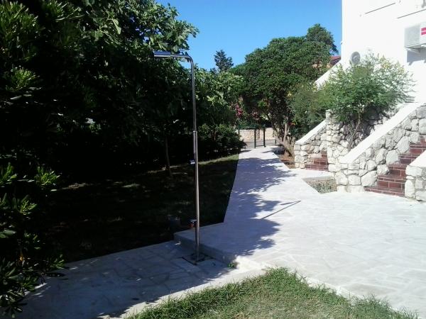 Apartament jest częścią pięknie urządzonego domu z dużym ogrodem. Wszystko w samym apartamencie jest urządzone z umiarem i nadaje się na wakacje. Duży taras jest dostępny z obu pokoi i ma widok na zachód słońca i jest w cieniu przez cały poranek, idealny na kawę z widokiem na morze. Ogród to cudowna śródziemnomorska przestrzeń pełna sosen, drzew oliwnych i nieśmiertelników z dostępnymi leżakami i meblami ogrodowymi i rozciąga się od domu do plaży. Na terenie posesji znajduje się duży parking. Zdjęcia nie oddają komfortu, czystości, światła i wszystkich innych cech tego zakwaterowania. Gospodyni jest niezwykle miła.
