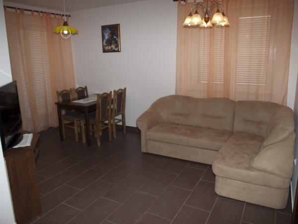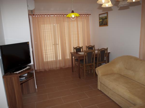 Mieszkania Pecník składa się z 5 apartamentów od 51 m2 do 57 m2, apartamenty są dla 4 osób znajdujących się w dwóch oddzielnych pokoi (2, 2). Wewnątrz domu znajduje się salon i kuchnia oraz przestronna łazienka. Od wyjścia na taras, gdzie piękny widok na morze. Mieszkania są w pełni klimatyzowane. Wyposażenie kuchni: Naczynia do przygotowywania i serwowania jedzenia i napojów, sztućce, lodówka, zamrażarka, ciepłą i zimną wodę, piekarnik i palniki. Wyposażenie łazienki: Prysznic z hydromasażem, WC Sprzęt living room: Telewizor LCD HD, kanapa Dostęp do budynku: Dojazd do budynku, parkingu. Dobre środki transportu publicznego plaże: Liczne piaszczyste plaże są od apartamentów od 100 do 800 m. Możliwość wypożyczenia leżaki, rowery wodne i parasole. Ruch: Odległość od centrum miasta wynosi 250 m, odległość od sklepu spożywczego 200 m, odległość od poczta 100 m, odległość od apteki 150 m, odległość od pogotowia 500 m, odległość od kantoru 50 m, odległość od restauracji, pizzerii i kawiarni 100 m. Informacje o ruchu drogowym: Odległość od przystanku autobusowego wynosi 250 m, odległość od stacji kolejowej 50 km - Zadar, odległość od najbliższego lotniska wynosi 50 km - lotnisko: Zadar, Odległość od portu promowego - 30 km, nazwa miejsca gdzie znajduje się przystań promowa: Zigljen. Inne uwagi: Goście przyjazd po 14: 00h, wyjazd do 10: 00h. Zwierzęta nie są akceptowane.
