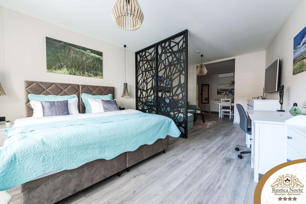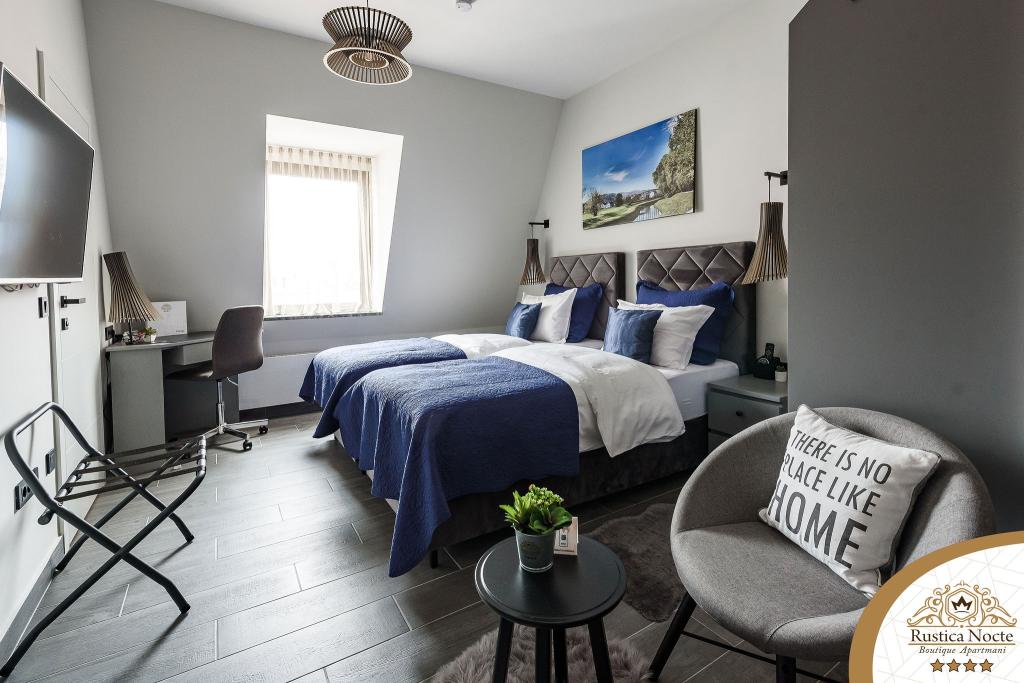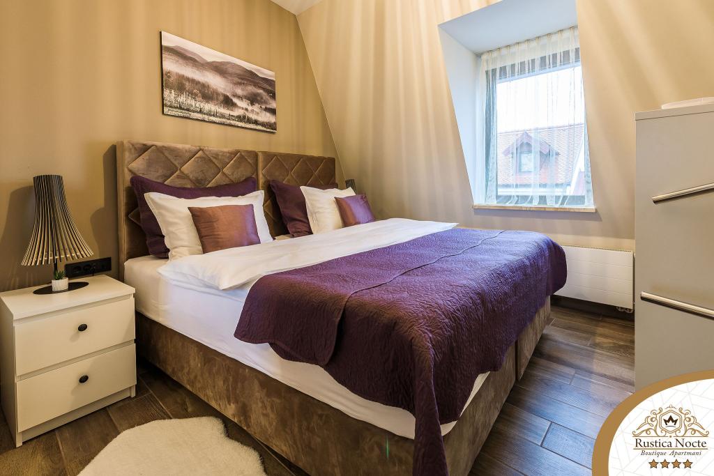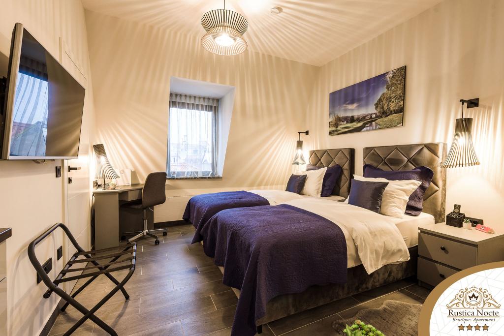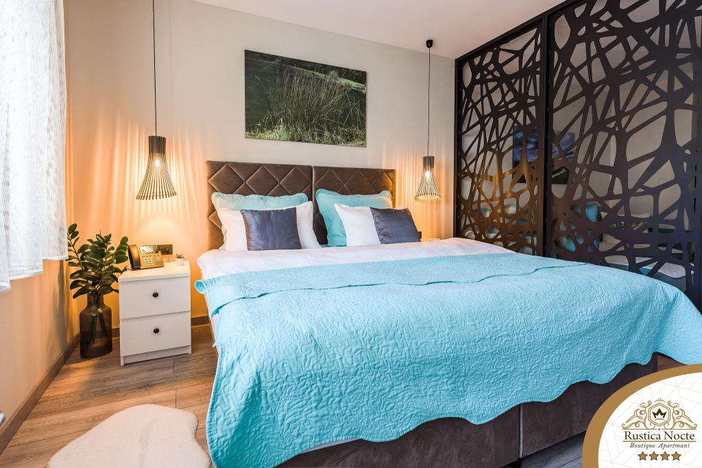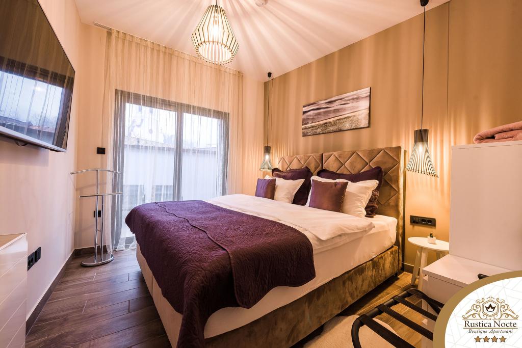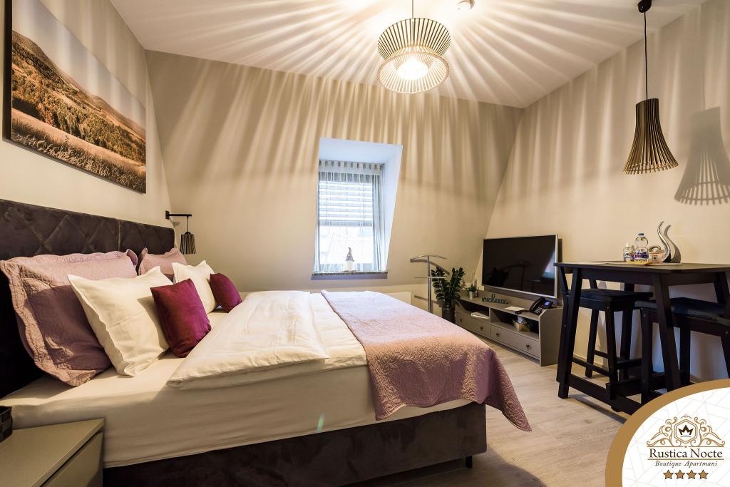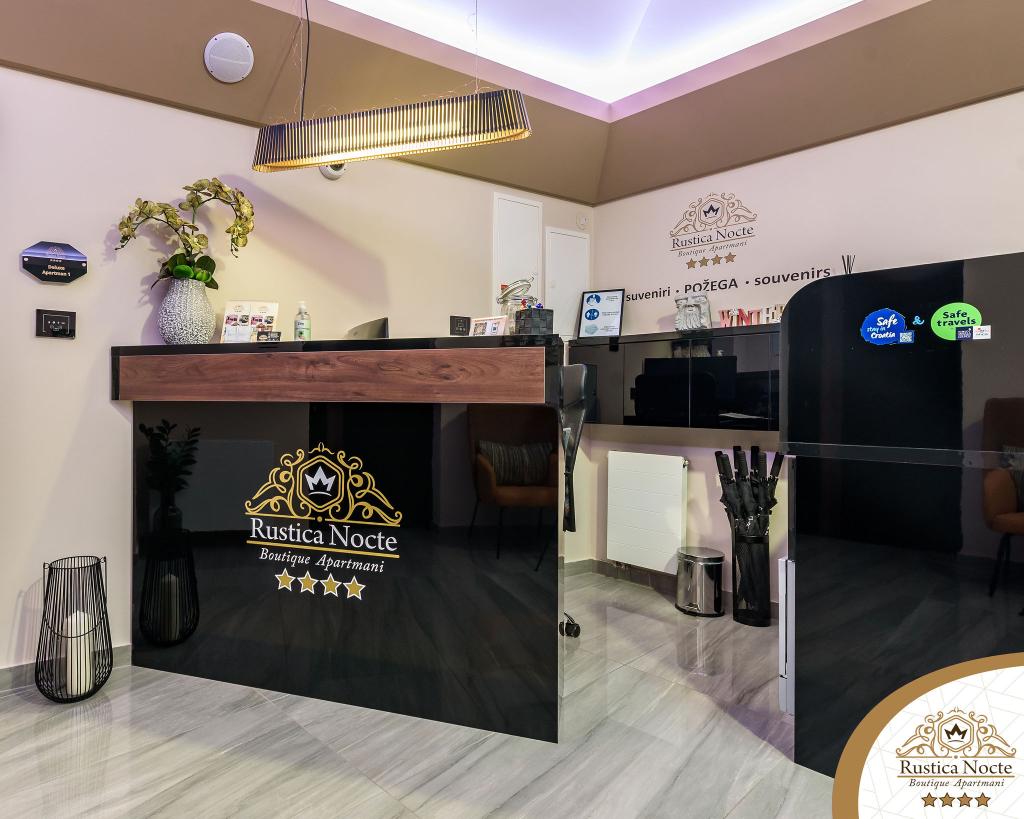 W samym sercu Slawonii, na początku deptaka w Požega, apartamenty Rustica Nocte Boutique są idealnym miejscem na wymarzone wakacje. Aby Państwa wypoczynek był jak najprzyjemniejszy, nasze nowoczesne apartamenty oferują Państwu sprzęt najwyższej jakości, a szczególnie chcielibyśmy podkreślić inteligentny system zarządzania całym apartamentem, bezpłatne szybkie Wi-Fi oraz Internet przewodowy i bezprzewodowy, Łóżka typu king-size boxspring, cyfrowe sejfy, telewizory Ultra HD Ambilight, 50-calowe odbiorniki telewizyjne z Netflix, satelitarnymi i lokalnymi programami oraz oświetlenie LED Ambilight w oknach, wentylowane i ogrzewane łazienki oraz w pełni wyposażone kuchnie w każdym z apartamentów. W każdym apartamencie znajduje się również minibar z napojami bezalkoholowymi i alkoholowymi oraz przekąskami. W apartamentach znajduje się również kącik dla dzieci ze stolikami, zabawkami, książeczkami do kolorowania i matami do zabawy. Dzięki temu można zaplanować urlop bardzo beztrosko.