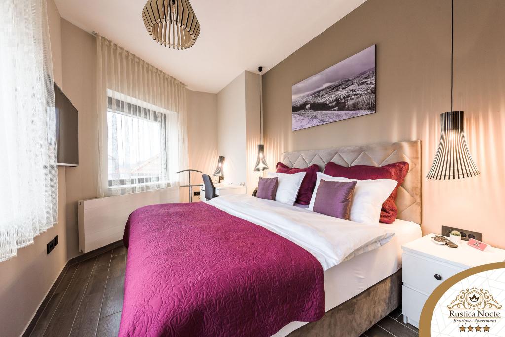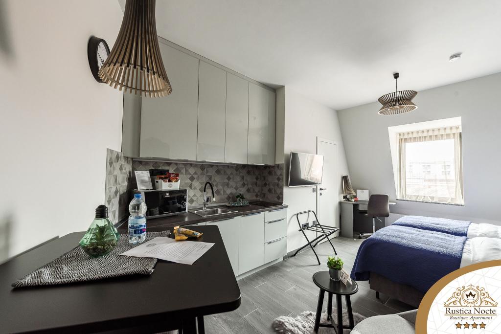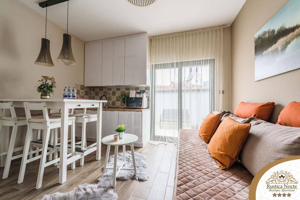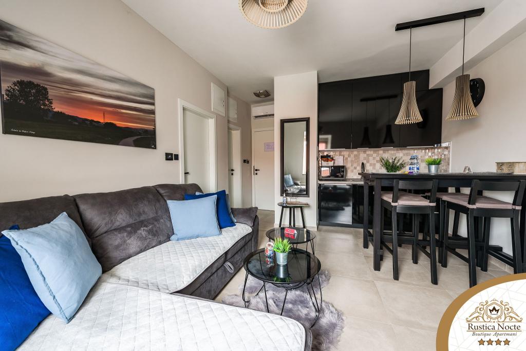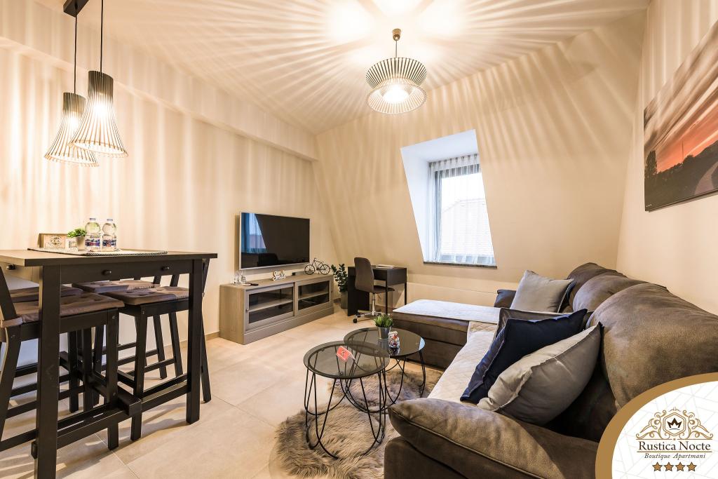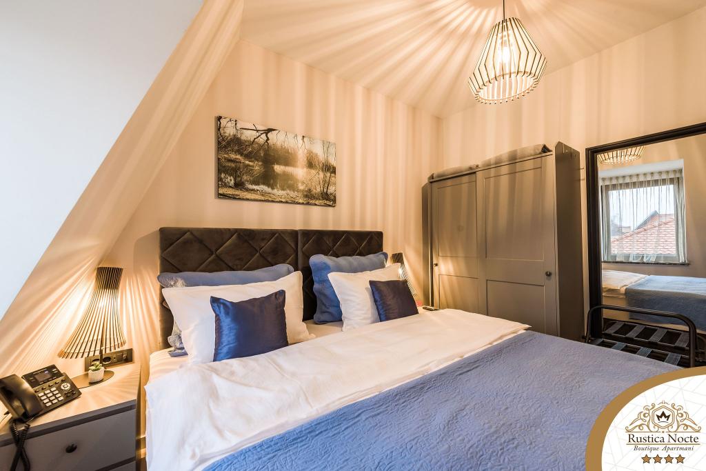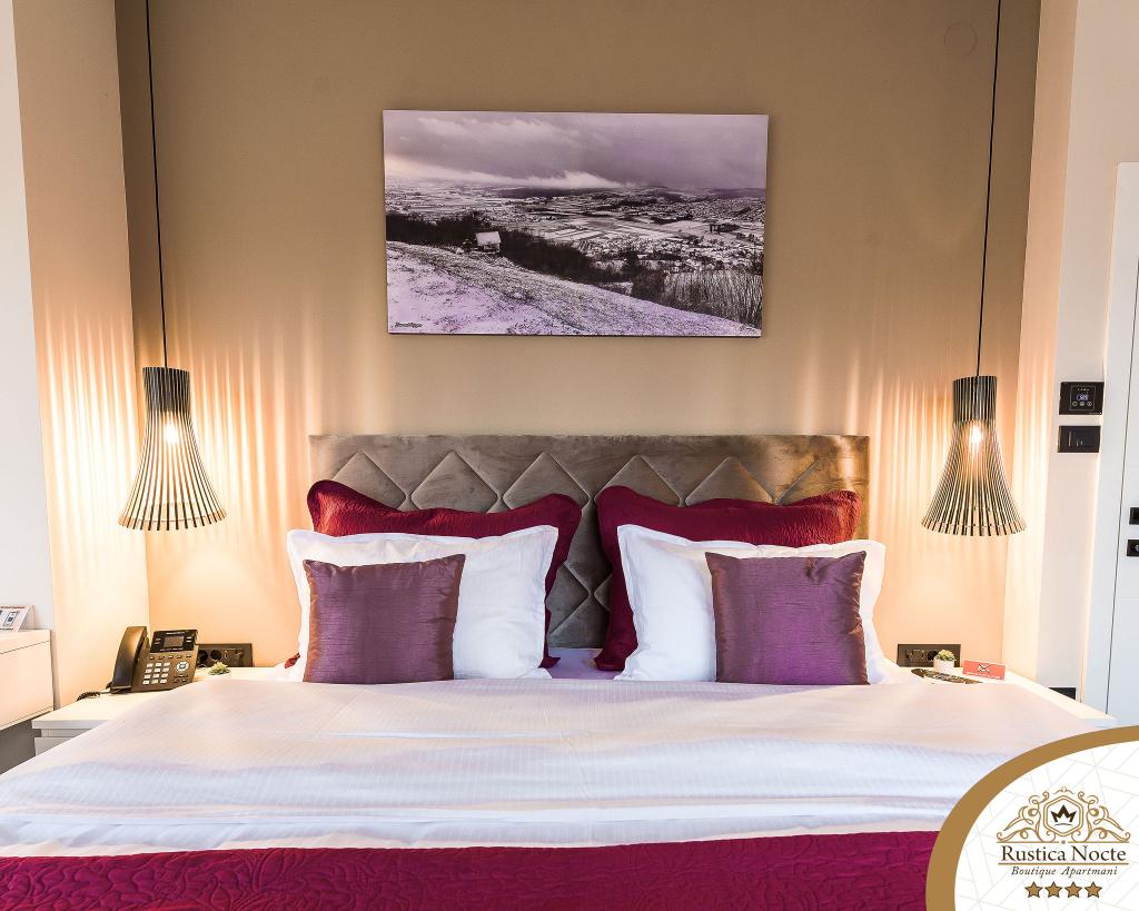 W samym sercu Slawonii, na początku deptaka w Požega, apartamenty Rustica Nocte Boutique są idealnym miejscem na wymarzone wakacje. Aby Państwa wypoczynek był jak najprzyjemniejszy, nasze nowoczesne apartamenty oferują Państwu sprzęt najwyższej jakości, a szczególnie chcielibyśmy podkreślić inteligentny system zarządzania całym apartamentem, bezpłatne szybkie Wi-Fi oraz Internet przewodowy i bezprzewodowy, Łóżka typu king-size boxspring, cyfrowe sejfy, telewizory Ultra HD Ambilight, 50-calowe odbiorniki telewizyjne z Netflix, satelitarnymi i lokalnymi programami oraz oświetlenie LED Ambilight w oknach, wentylowane i ogrzewane łazienki oraz w pełni wyposażone kuchnie w każdym z apartamentów. W każdym apartamencie znajduje się również minibar z napojami bezalkoholowymi i alkoholowymi oraz przekąskami. W apartamentach znajduje się również kącik dla dzieci ze stolikami, zabawkami, książeczkami do kolorowania i matami do zabawy. Dzięki temu można zaplanować urlop bardzo beztrosko.