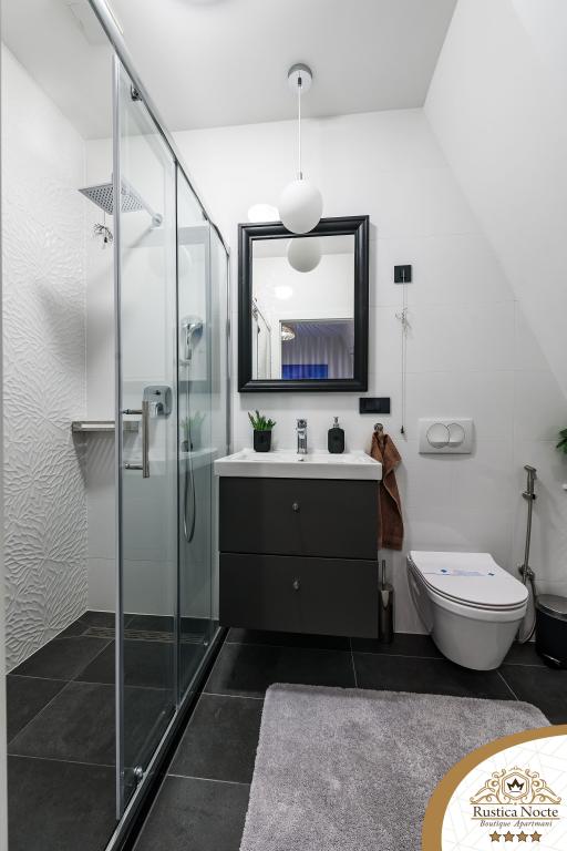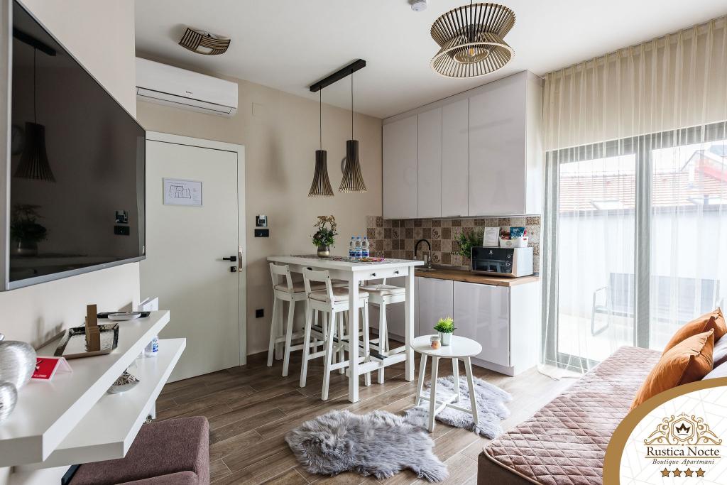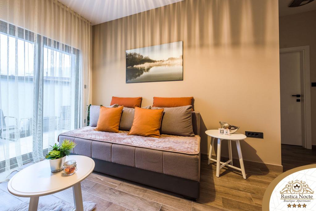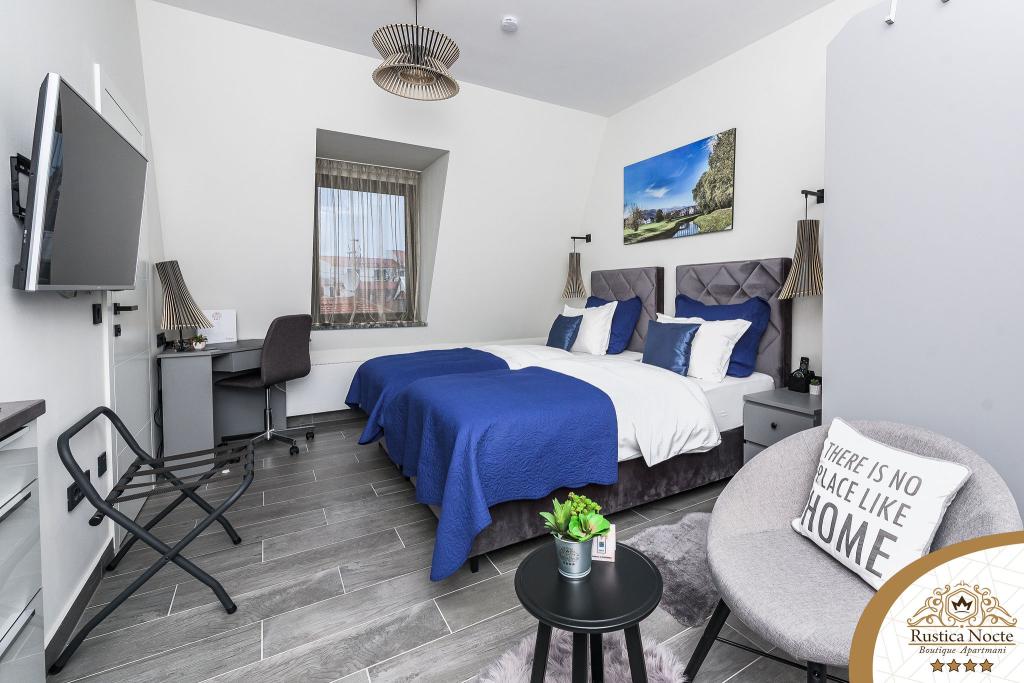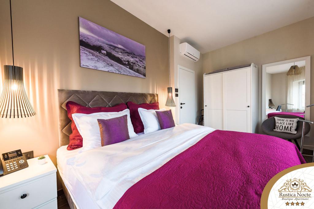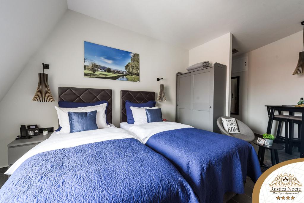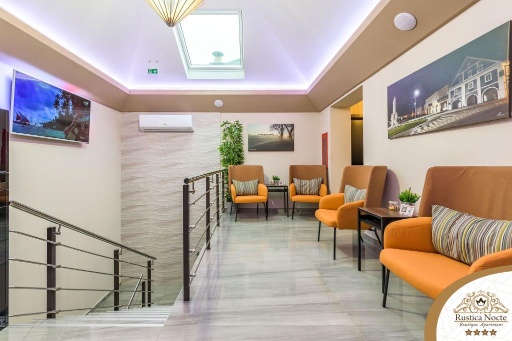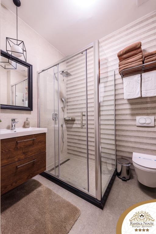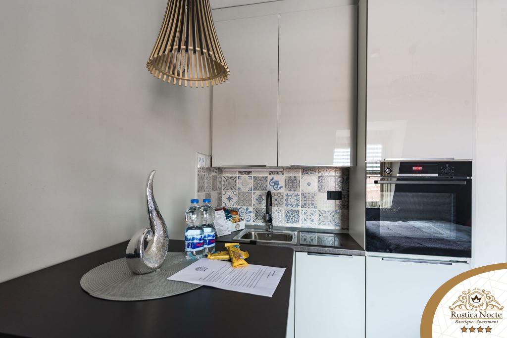 W samym sercu Slawonii, na początku deptaka w Požega, apartamenty Rustica Nocte Boutique są idealnym miejscem na wymarzone wakacje. Aby Państwa wypoczynek był jak najprzyjemniejszy, nasze nowoczesne apartamenty oferują Państwu sprzęt najwyższej jakości, a szczególnie chcielibyśmy podkreślić inteligentny system zarządzania całym apartamentem, bezpłatne szybkie Wi-Fi oraz Internet przewodowy i bezprzewodowy, Łóżka typu king-size boxspring, cyfrowe sejfy, telewizory Ultra HD Ambilight, 50-calowe odbiorniki telewizyjne z Netflix, satelitarnymi i lokalnymi programami oraz oświetlenie LED Ambilight w oknach, wentylowane i ogrzewane łazienki oraz w pełni wyposażone kuchnie w każdym z apartamentów. W każdym apartamencie znajduje się również minibar z napojami bezalkoholowymi i alkoholowymi oraz przekąskami. W apartamentach znajduje się również kącik dla dzieci ze stolikami, zabawkami, książeczkami do kolorowania i matami do zabawy. Dzięki temu można zaplanować urlop bardzo beztrosko.