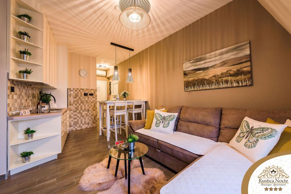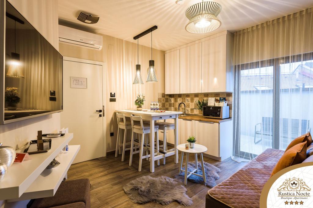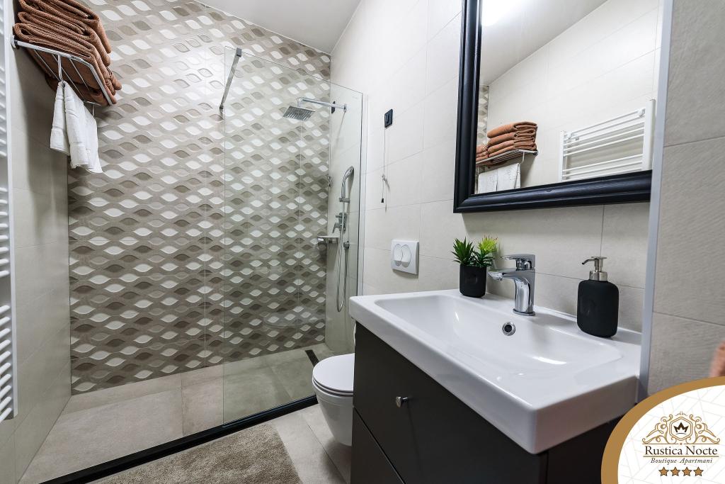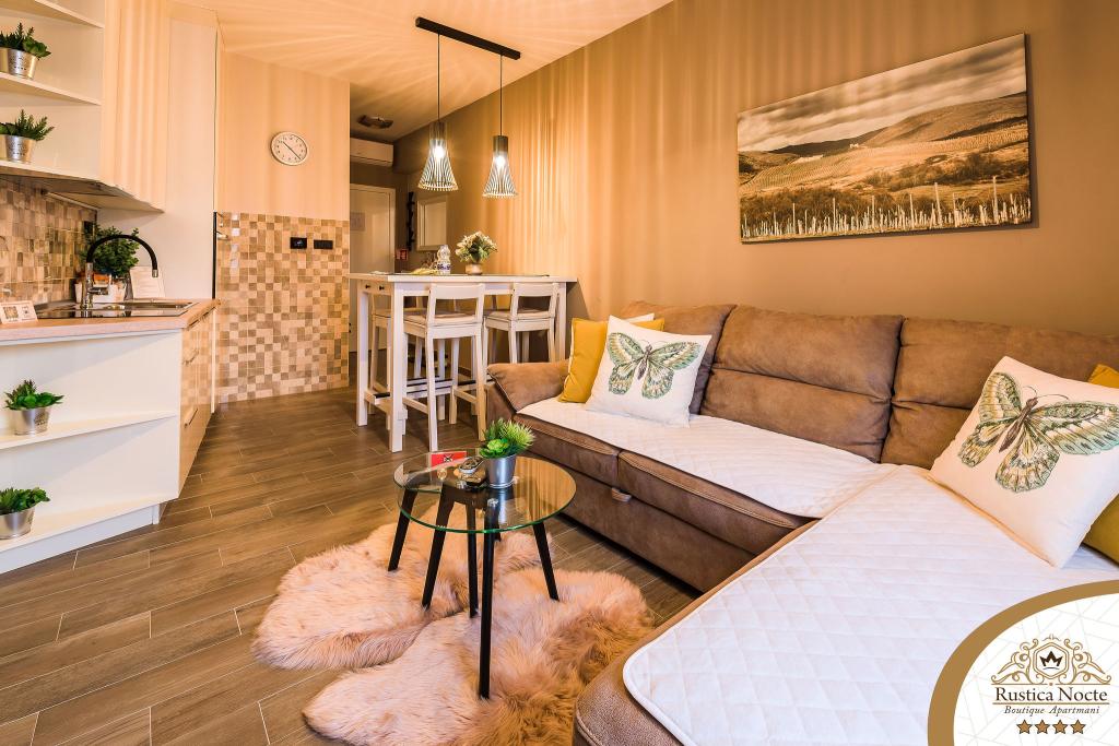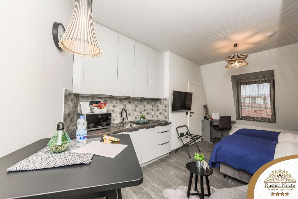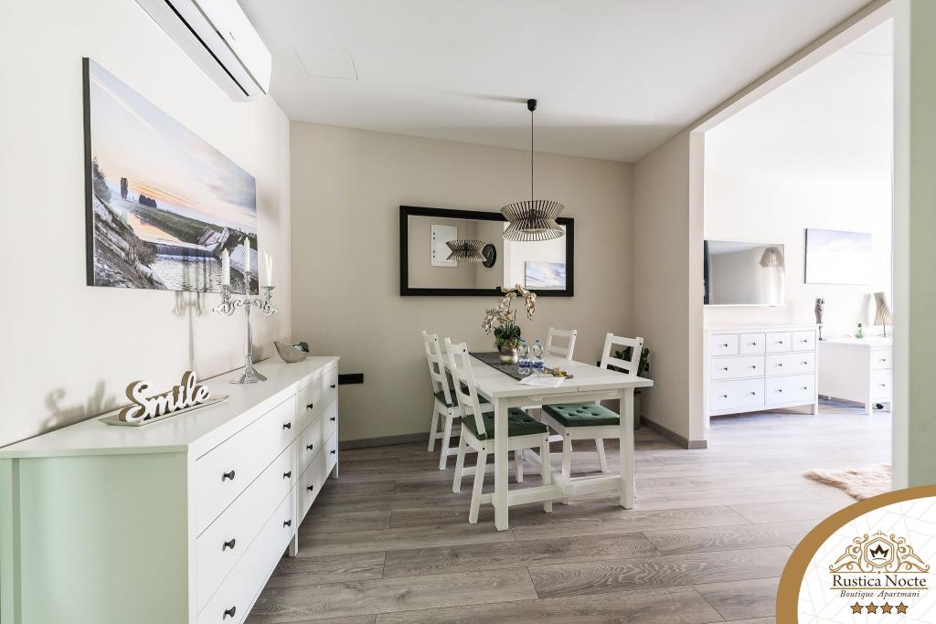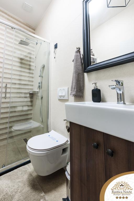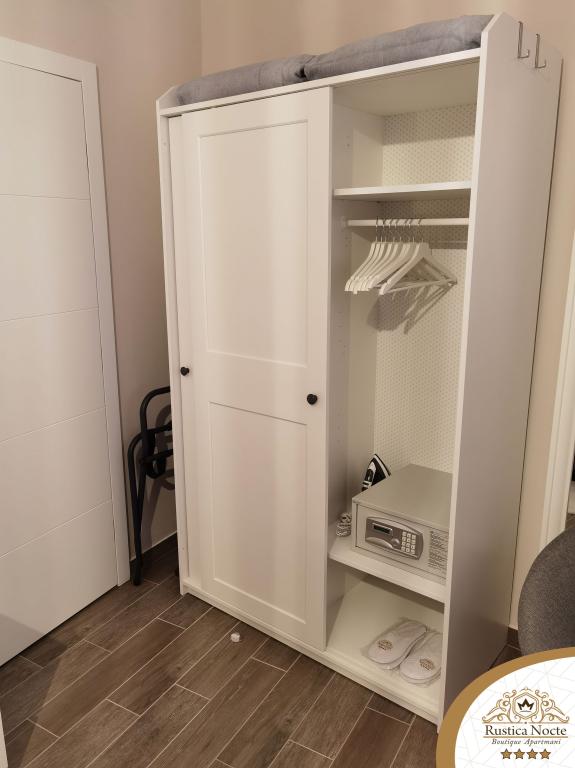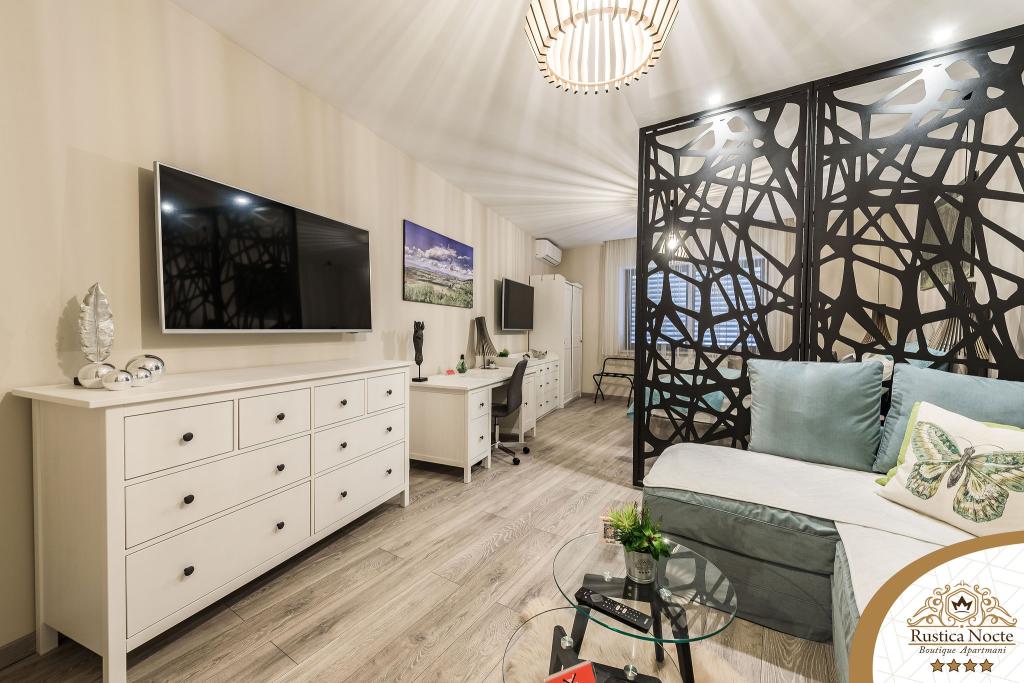 W samym sercu Slawonii, na początku deptaka w Požega, apartamenty Rustica Nocte Boutique są idealnym miejscem na wymarzone wakacje. Aby Państwa wypoczynek był jak najprzyjemniejszy, nasze nowoczesne apartamenty oferują Państwu sprzęt najwyższej jakości, a szczególnie chcielibyśmy podkreślić inteligentny system zarządzania całym apartamentem, bezpłatne szybkie Wi-Fi oraz Internet przewodowy i bezprzewodowy, Łóżka typu king-size boxspring, cyfrowe sejfy, telewizory Ultra HD Ambilight, 50-calowe odbiorniki telewizyjne z Netflix, satelitarnymi i lokalnymi programami oraz oświetlenie LED Ambilight w oknach, wentylowane i ogrzewane łazienki oraz w pełni wyposażone kuchnie w każdym z apartamentów. W każdym apartamencie znajduje się również minibar z napojami bezalkoholowymi i alkoholowymi oraz przekąskami. W apartamentach znajduje się również kącik dla dzieci ze stolikami, zabawkami, książeczkami do kolorowania i matami do zabawy. Dzięki temu można zaplanować urlop bardzo beztrosko.