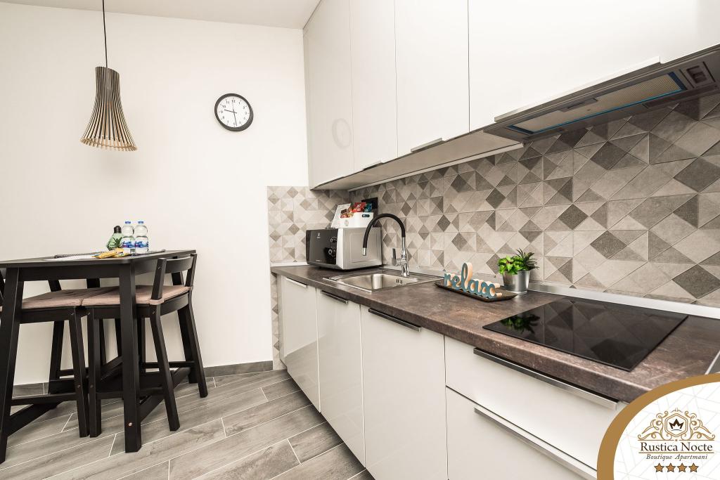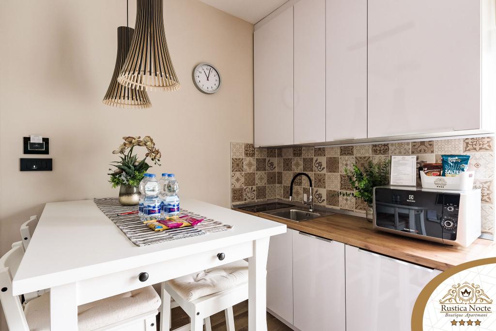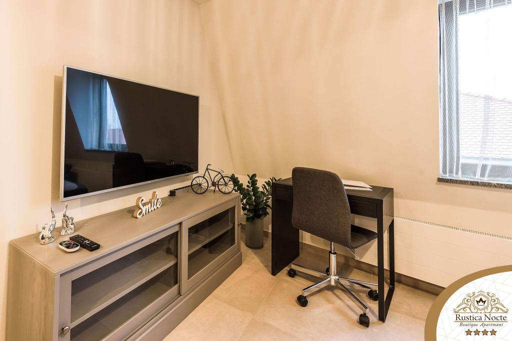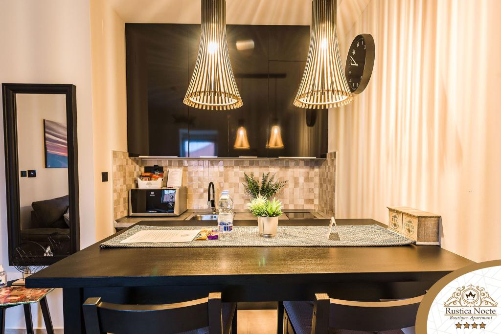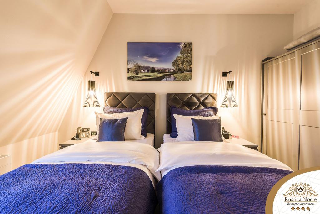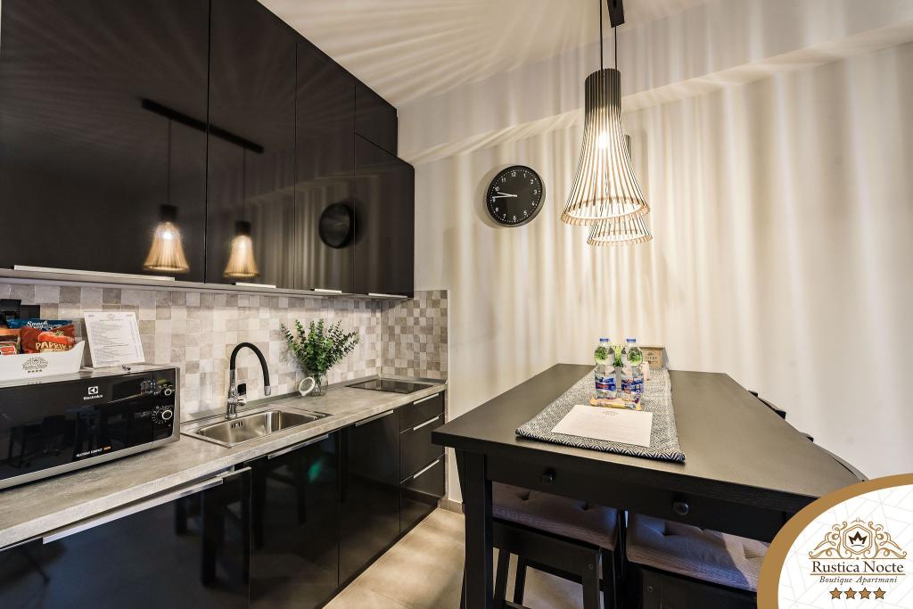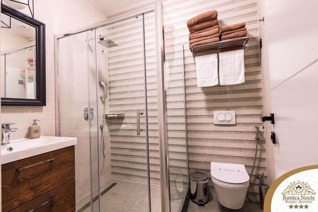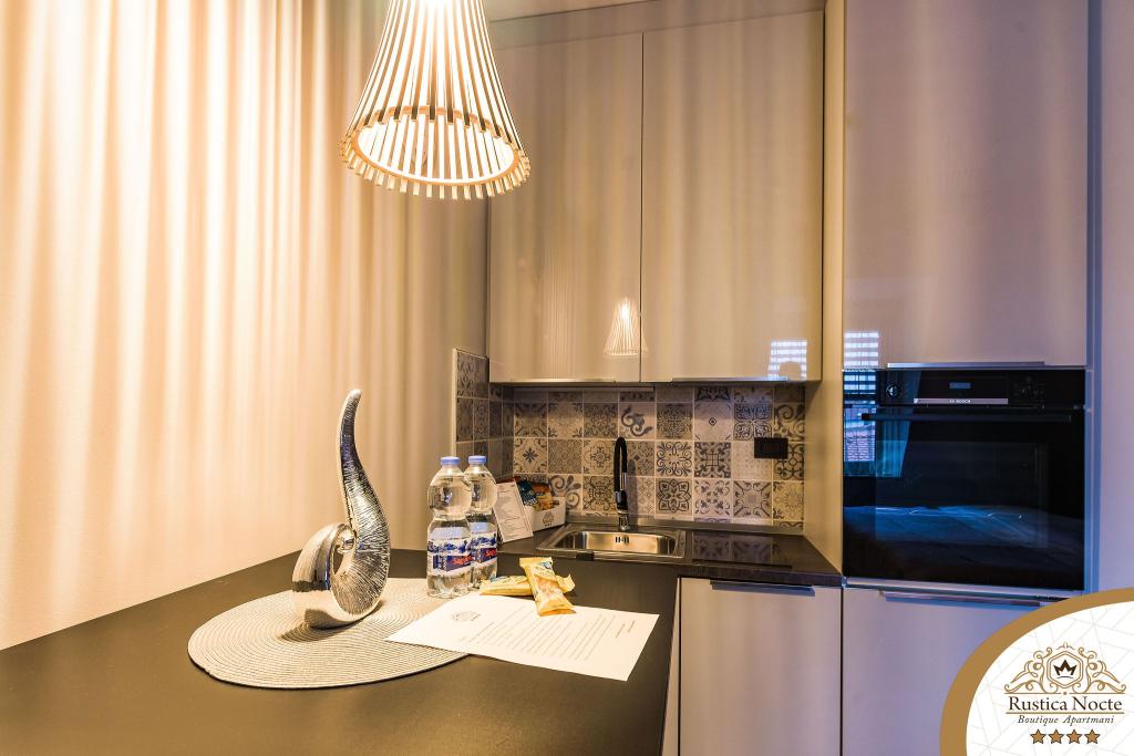 W samym sercu Slawonii, na początku deptaka w Požega, apartamenty Rustica Nocte Boutique są idealnym miejscem na wymarzone wakacje. Aby Państwa wypoczynek był jak najprzyjemniejszy, nasze nowoczesne apartamenty oferują Państwu sprzęt najwyższej jakości, a szczególnie chcielibyśmy podkreślić inteligentny system zarządzania całym apartamentem, bezpłatne szybkie Wi-Fi oraz Internet przewodowy i bezprzewodowy, Łóżka typu king-size boxspring, cyfrowe sejfy, telewizory Ultra HD Ambilight, 50-calowe odbiorniki telewizyjne z Netflix, satelitarnymi i lokalnymi programami oraz oświetlenie LED Ambilight w oknach, wentylowane i ogrzewane łazienki oraz w pełni wyposażone kuchnie w każdym z apartamentów. W każdym apartamencie znajduje się również minibar z napojami bezalkoholowymi i alkoholowymi oraz przekąskami. W apartamentach znajduje się również kącik dla dzieci ze stolikami, zabawkami, książeczkami do kolorowania i matami do zabawy. Dzięki temu można zaplanować urlop bardzo beztrosko.