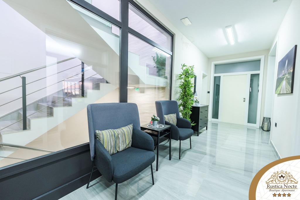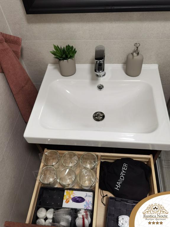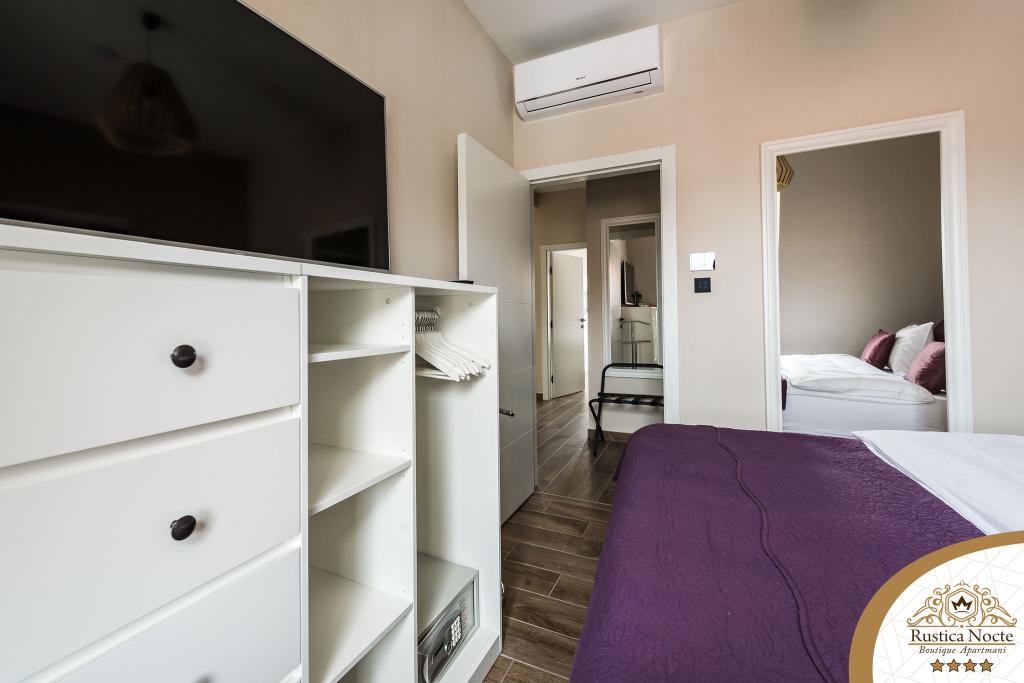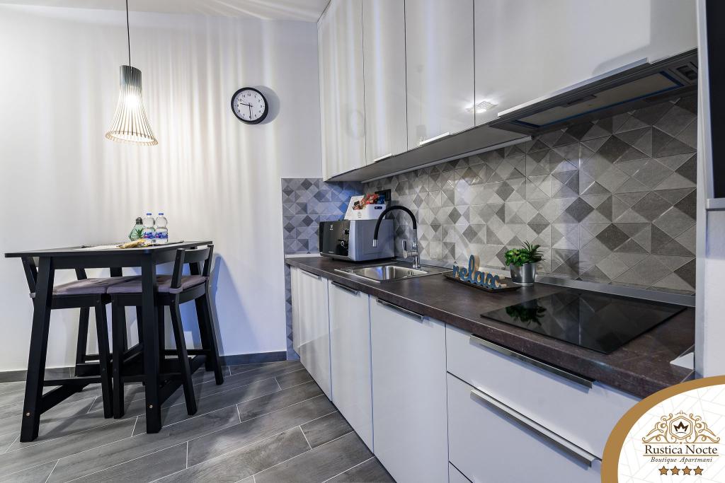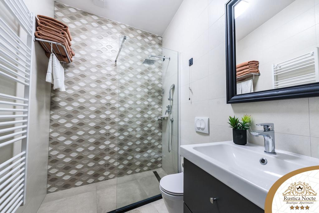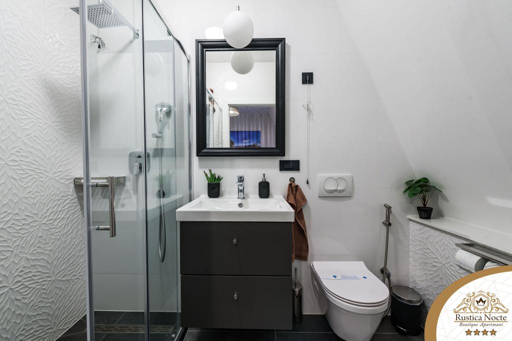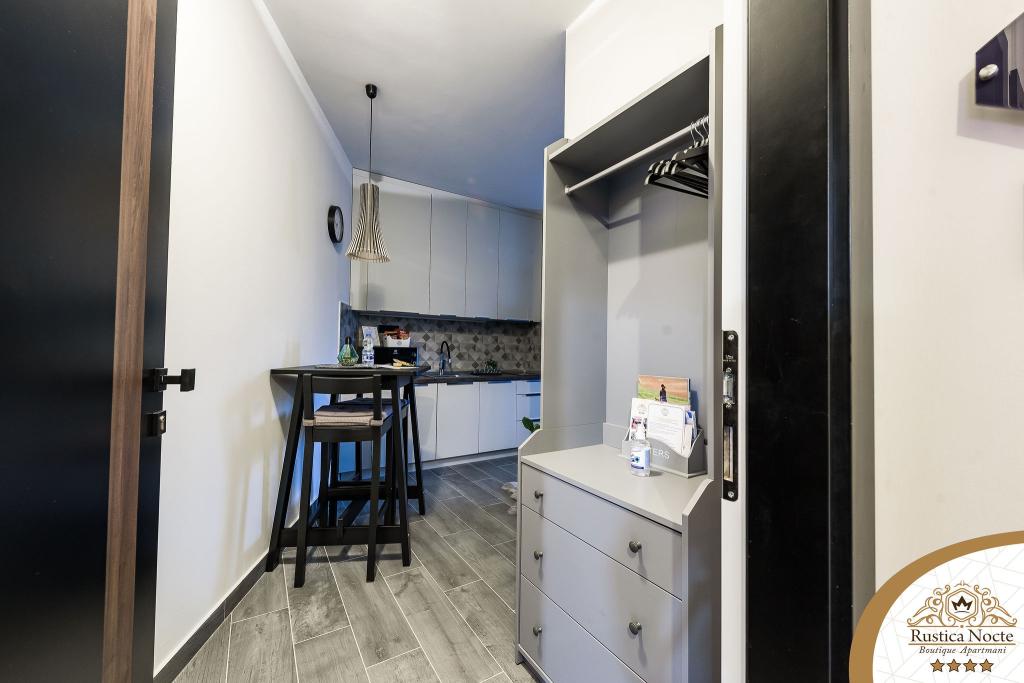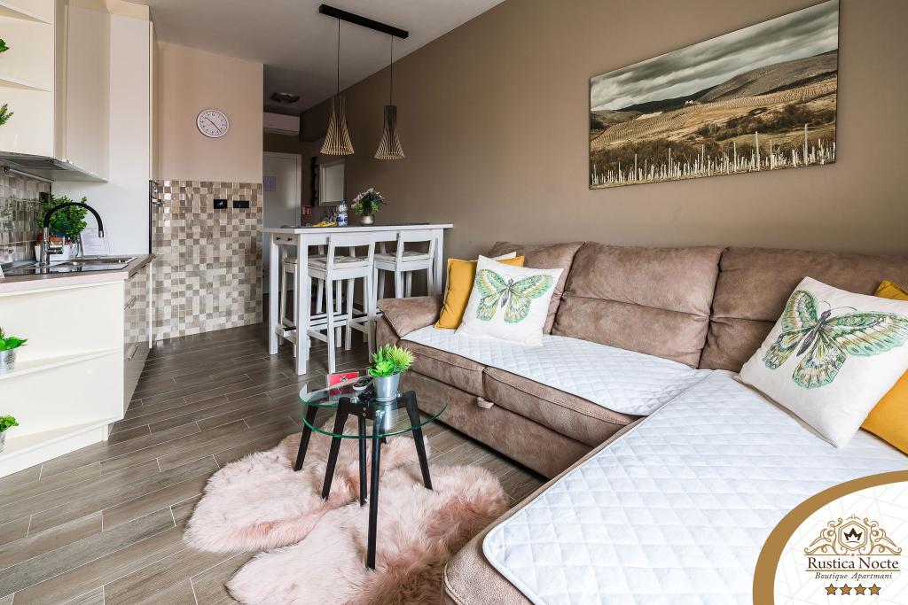 W samym sercu Slawonii, na początku deptaka w Požega, apartamenty Rustica Nocte Boutique są idealnym miejscem na wymarzone wakacje. Aby Państwa wypoczynek był jak najprzyjemniejszy, nasze nowoczesne apartamenty oferują Państwu sprzęt najwyższej jakości, a szczególnie chcielibyśmy podkreślić inteligentny system zarządzania całym apartamentem, bezpłatne szybkie Wi-Fi oraz Internet przewodowy i bezprzewodowy, Łóżka typu king-size boxspring, cyfrowe sejfy, telewizory Ultra HD Ambilight, 50-calowe odbiorniki telewizyjne z Netflix, satelitarnymi i lokalnymi programami oraz oświetlenie LED Ambilight w oknach, wentylowane i ogrzewane łazienki oraz w pełni wyposażone kuchnie w każdym z apartamentów. W każdym apartamencie znajduje się również minibar z napojami bezalkoholowymi i alkoholowymi oraz przekąskami. W apartamentach znajduje się również kącik dla dzieci ze stolikami, zabawkami, książeczkami do kolorowania i matami do zabawy. Dzięki temu można zaplanować urlop bardzo beztrosko.