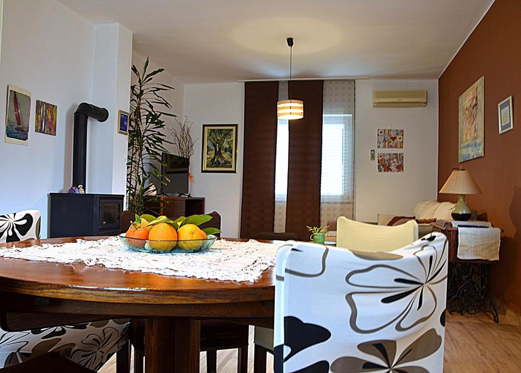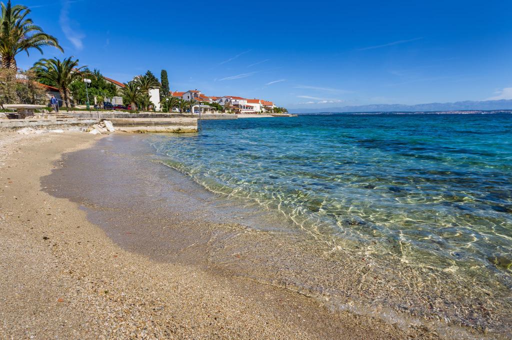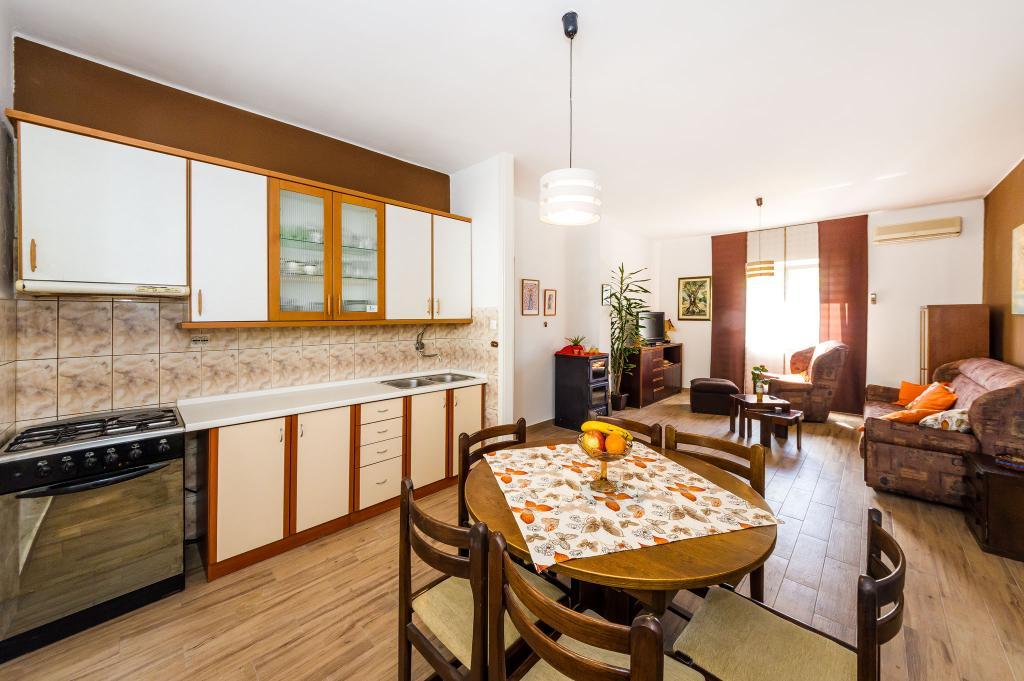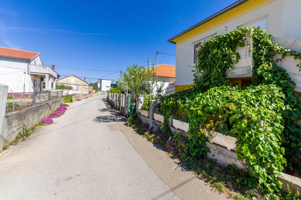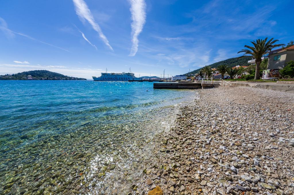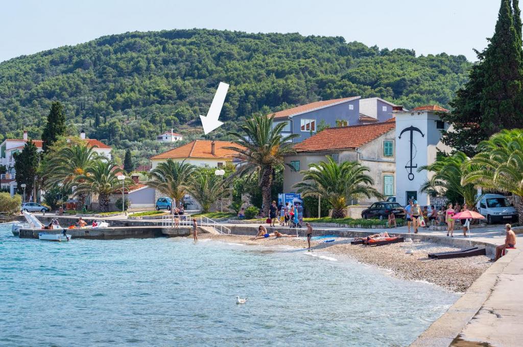 Dwupokojowe komfortowe mieszkanie na parterze prywatnego domu, pierwszy rząd do morza, w południowej części Preku.W bezpośrednim sąsiedztwie znajduje się rynek, targ rybny, sklep mięsny, restauracja, pizzeria, bank, apteka, piekarnia i cukiernia, przystań promowa, stacja benzynowa. Odległość od centrum Preko i przystani Preko wynosi 300 metrów, spacerkiem od Lungo Mare. Plac zabaw dla dzieci w odległości 300 metrów. Plaża jest mieszanką piasku i żwiru, dostępne są leżaki i parasole. Przed apartamentem mała przystań dla pontonu lub małej łódki. Przed wejściem niewielki ogródek osłonięty od słońca zielenią, ze stołem i krzesłami do siedzenia i spożywania posiłków. Parking znajduje się w bezpośrednim sąsiedztwie apartamentu.