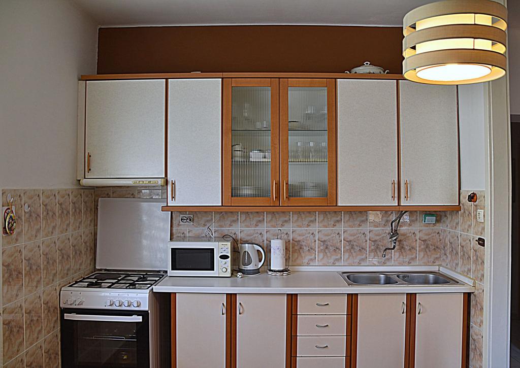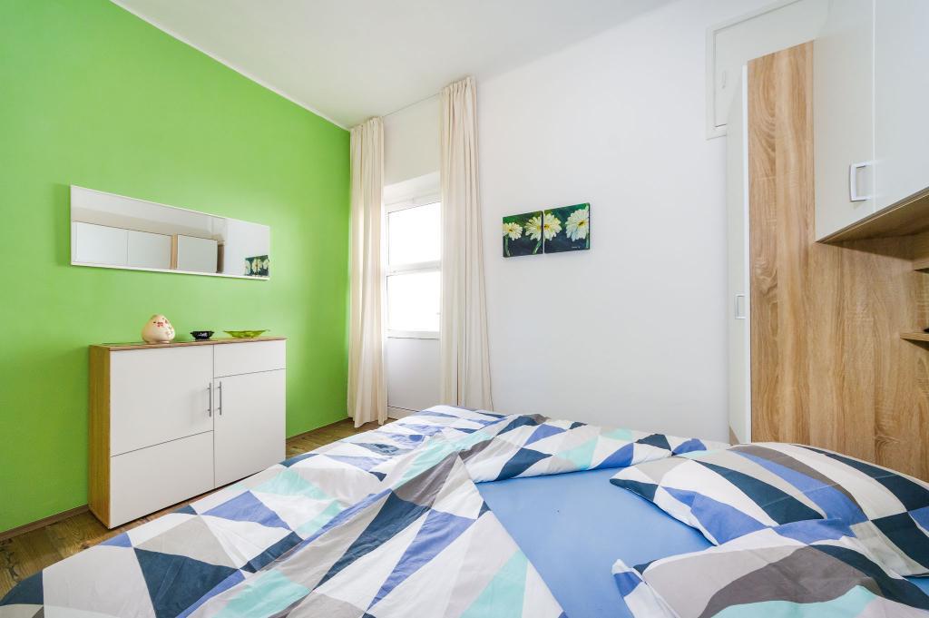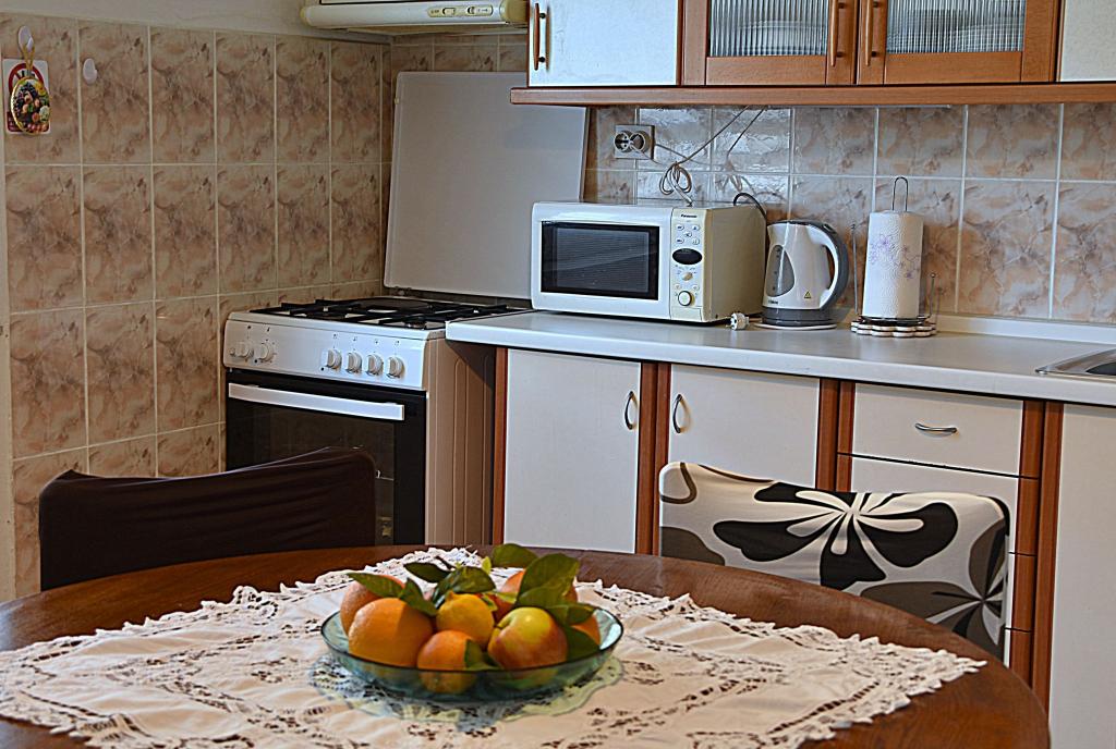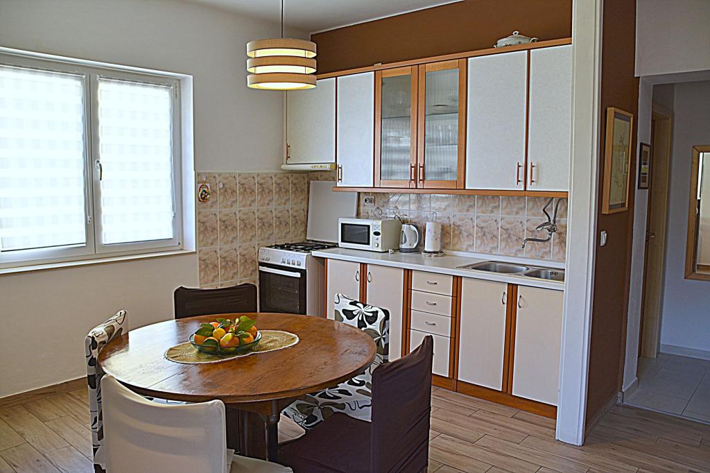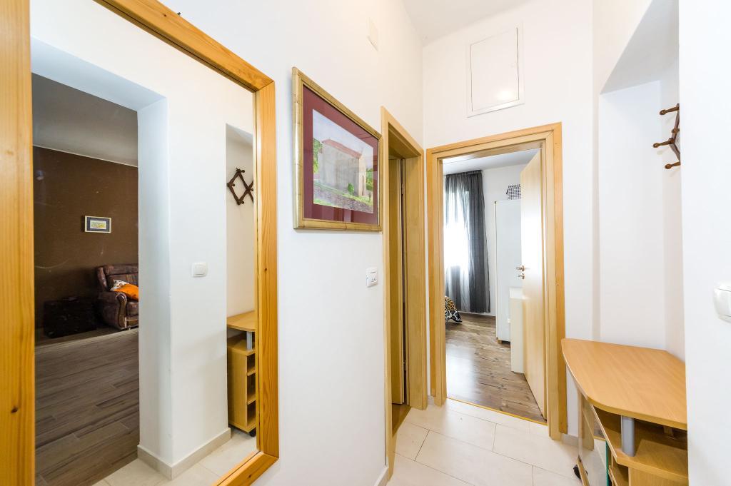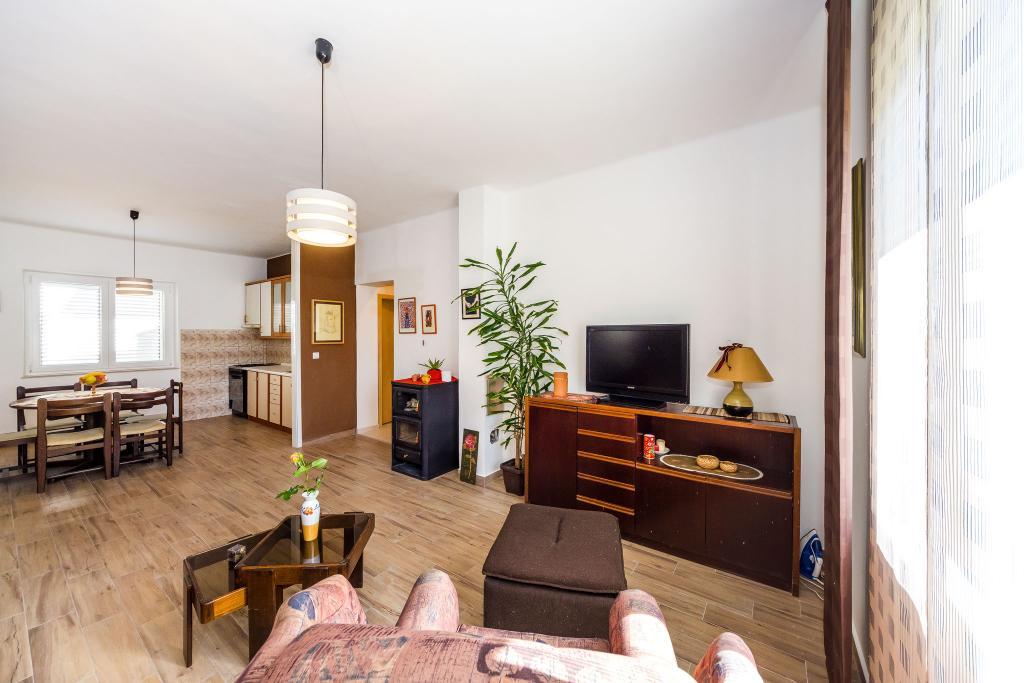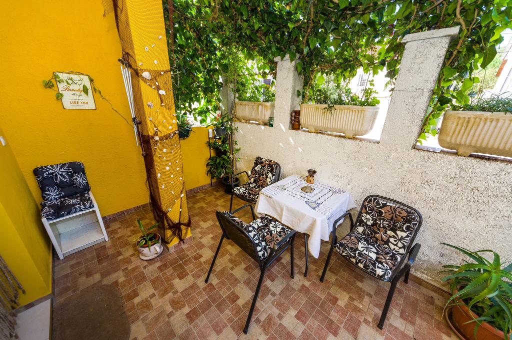 Dwupokojowe komfortowe mieszkanie na parterze prywatnego domu, pierwszy rząd do morza, w południowej części Preku.W bezpośrednim sąsiedztwie znajduje się rynek, targ rybny, sklep mięsny, restauracja, pizzeria, bank, apteka, piekarnia i cukiernia, przystań promowa, stacja benzynowa. Odległość od centrum Preko i przystani Preko wynosi 300 metrów, spacerkiem od Lungo Mare. Plac zabaw dla dzieci w odległości 300 metrów. Plaża jest mieszanką piasku i żwiru, dostępne są leżaki i parasole. Przed apartamentem mała przystań dla pontonu lub małej łódki. Przed wejściem niewielki ogródek osłonięty od słońca zielenią, ze stołem i krzesłami do siedzenia i spożywania posiłków. Parking znajduje się w bezpośrednim sąsiedztwie apartamentu.