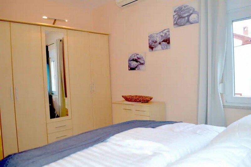 W pełni i nowocześnie wyposażone mieszkanie w elitarnej części Prek. Obiekt położony jest 6 minut od centrum Prek i 5 minut od pierwszej plaży. Na zadbanej plaży z dodatkowymi udogodnieniami, leżaki, parasole, prysznic, przebieralnia - wszystko gratis. Apartrman oferuje bezpłatny parking w garażu, możliwość korzystania z grilla oraz miejsce na lunch/kolację na świeżym powietrzu. Korzystanie z prysznica na zewnątrz i przestronnego podwórka z pięknie zagospodarowanym ogrodem z sezonowymi warzywami i owocami. Oprócz istniejącego wyposażenia apartament oferuje ekspres do kawy, czajnik, toster, blender, ogromną lodówkę side by side z zamrażarką i kostkami lodu lub zimną wodą, sejf w jednym pokoju, balkon z meblami na kawę dla dwóch osób w drugim świeże poranne godziny, leżak do opalania, z huśtawką na podwórku, dużym parasolem itp., we wszystkich oknach moskitiery, na dużym tarasie jest wentylator, a do tego jeszcze gry planszowe, Netflix za darmo,...