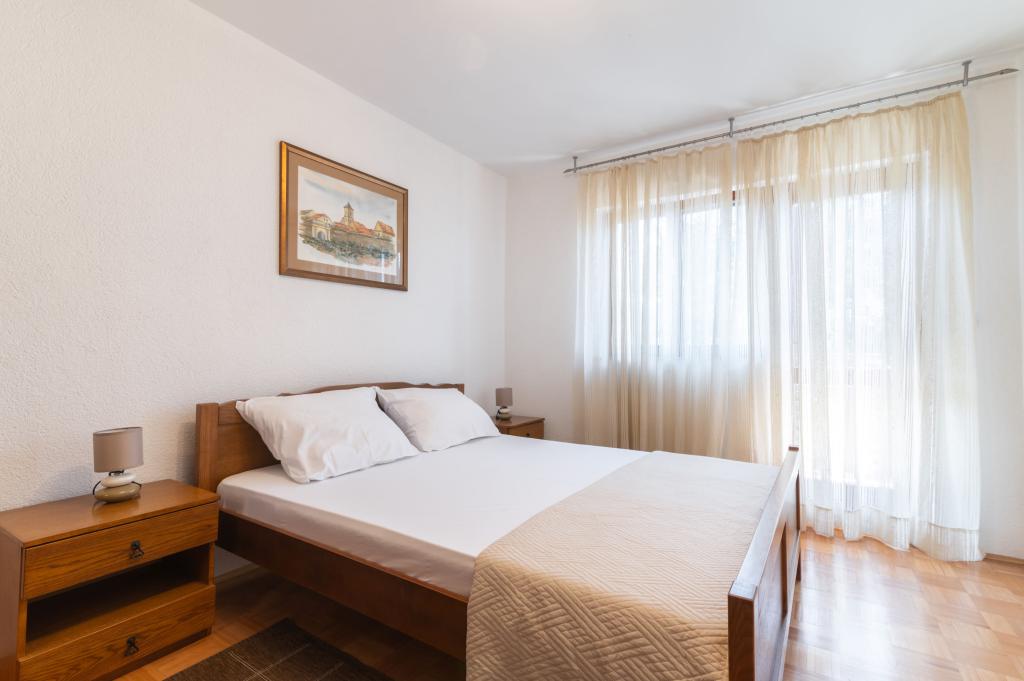 Dom położony jest w pierwszym rzędzie do morza, w pobliżu centrum Prek. Komfortowe, świeżo wyremontowane mieszkanie znajduje się na pierwszym piętrze domu i posiada 2 sypialnie, pokój dziecięcy, salon z kuchnią, łazienkę oraz taras. Pokoje mają dostęp do balkonu z widokiem na plażę i morze. Z salonu można wyjść na taras z widokiem na plażę i morze. W salonie znajduje się dodatkowe łóżko. Komfortowa kawalerka o powierzchni 60 m2 z 4 łóżkami, kuchnią, pokojem dziennym i łazienką znajduje się na poddaszu domu. Na parterze znajduje się wspólny duży taras, z którego mogą korzystać goście apartamentów typu studio. Mamy również duży grill i piec chlebowy na podwórku. Parking dla samochodów znajduje się na podwórku. Apartamenty wyposażone są w klimatyzację, telewizję satelitarną i łącze Wi-Fi.