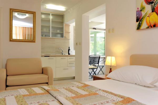 Willa EDEN znajduje się w jednej z NAJBARDZIEJ ATRAKCYJNYCH LOKALIZACJI w okolicy, tuż przy piaszczystej plaży Jaz w Preko na wyspie Ugljan. Apartamenty w willi EDEN są niezwykle komfortowe i oferują wyjątkowe widoki na morze, całą piaszczystą plażę, zieloną wysepkę Školjić w bezpośrednim sąsiedztwie oraz miasto Zadar. Plaża obok willi EDEN jest idealna dla rodzin z dziećmi, nawet tymi najmniejszymi. Willa EDEN posiada prywatny ogród z trawnikiem, altaną i grillem. W bezpośrednim sąsiedztwie, około 50 metrów, znajduje się kilka wysokiej jakości punktów gastronomicznych, w tym bar na plaży, pizzeria, restauracja i cukiernia, dzięki czemu goście mogą w pełni cieszyć się pobytem. Okolica i miasto Preko są bardzo zadbane, z zadbanymi promenadami, ścieżkami rowerowymi, zadbanymi plażami i licznymi udogodnieniami, które tworzą to miejsce o wysokiej jakości i bez tłumów. Bliskość Zadaru, oferta wycieczek i udogodnienia dla dzieci sprawiają, że letnie wakacje w naszym mieście i w willi EDEN będą niezapomniane. Jesteśmy pewni, że większość z Państwa powróci do nas na lata.