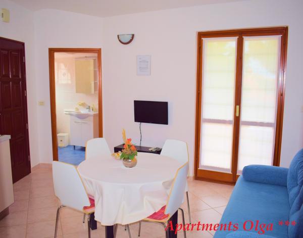 Olga Apartments, położony w samym centrum Premantura (1 min pieszo), blisko chronionego krajobrazu Kamenjak, gdzie znajdują się piękne plaże i zatoki. Usytuowany w spokojnej części Premantura, ale blisko do centrum, gdzie znajdują się restauracje, sklepy, bary i inne obiekty. Apartamenty są ładnie urządzone i przestronne z TV / Sat, klimatyzację, ekspres do kawy, sejf, bezpłatny bezprzewodowy, suszarka do włosów, ręczniki i pościel. Każdy apartament posiada własny balkon lub taras, z niezbędnym wyposażeniem. miejsce parkingowe dla samochodu, a pomieszczenie do przechowywania rowerów i innego sprzętu. W cenę wliczone jest końcowe sprzątanie. Mieszkania na drugim piętrze posiadają częściowy widok na morze. Gospodarze są zawsze dostępne dla wszelkich dalszych informacji i pomocy. Apartamenty położone są w DE spokojnej części Premantura otoczony zalenilom. Centrum Premanture jest w ciągu 5 min spacerem Zrelaksuj się w naszych mieszkaniach i spędzić wakacje w Istrii szczęśliwy i zadowolony.