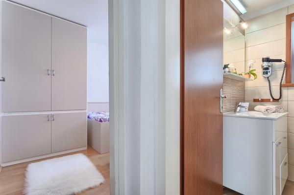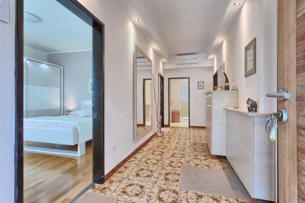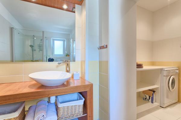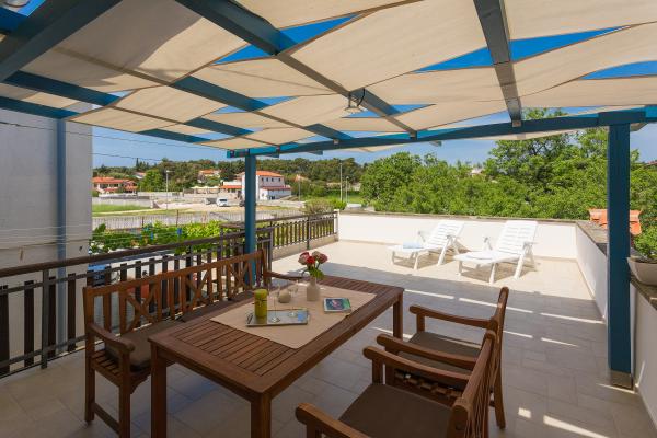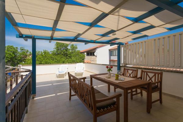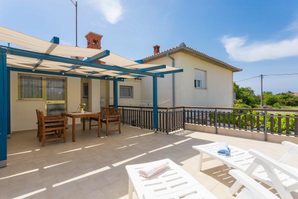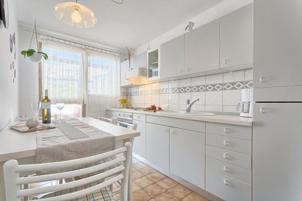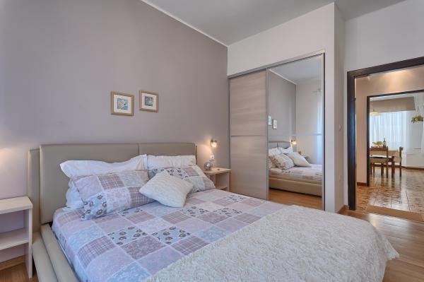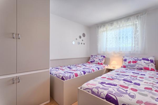 W tym rodzinnym domu znajdują się dwa odnowione apartamenty dla 4 osób. Są bardzo ciche i przyjemne na pobyt z dziećmi, ponieważ dom otoczony jest ogrodem i zamkniętym miejscem parkingowym dla dwóch pojazdów. Każdy apartament ma osobne wejście, dwie sypialnie, pokój dzienny, łazienka z prysznicem, kuchnia, korytarz, klimatyzacja, pralka i Wi-Fi we wszystkich pokojach, a mieszkanie na parterze ma zmywarkę. Apartament na parterze posiada duży taras, część jest chroniona markizą, co pozwala na przyjemny pobyt, natomiast mieszkanie na parterze ma salon do spożywania posiłków i życia na świeżym powietrzu. Chociaż znajdują się przy głównej drodze, apartamenty są chronione przed widokiem i hałasem, a od centrum są dwie minuty spacerem. W tym samym czasie musisz dołączyć do drogi prowadzącej do chronionego obszaru Kamenjak, który zachwyci Cię naturą i mnóstwem interesujących zatok i plaż oraz miejscem, w którym znajdziesz swoje miejsce na przyjemne wakacje.