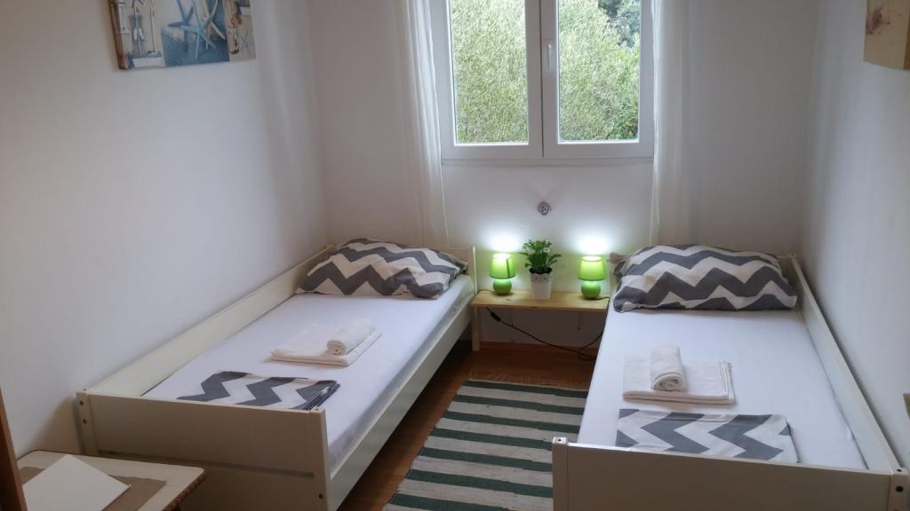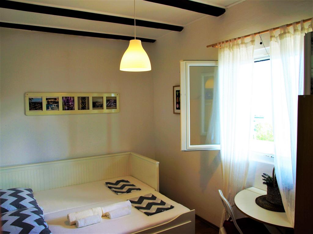 Dom wakacyjny położony jest blisko morza, z pięknym widokiem na otwarte morze. Idealny na wakacje i odpoczynek od zgiełku. Kilka minut spacerem do głównej plaży, około 200 metrów od sklepu, tyle samo do restauracji i głównego portu, gdzie cumują katamarany i promy. Wszystko jest blisko, a jednocześnie dom położony jest w cichym i ustronnym miejscu, ponieważ ostatni dom na końcu wyspy znajduje się zaledwie 50 metrów od morza. Nieruchomość jest niezależna, to dom, w którym jesteś sam (sąsiedzi są tylko z jednej strony, a z drugiej nie ma nikogo na końcu wyspy), ma dwa pokoje, jeden to sypialnia z dwoma oddzielnymi łóżkami, drugi pokój ma łóżko dla dwóch osób. Dom posiada salon z kuchnią, łazienkę z prysznicem. Do dyspozycji są również dwa tarasy z widokiem na morze. Jeden duży ze stołem dla kilku osób oraz drugi, na który można wyjść bezpośrednio z domu. Dom ma powierzchnię 38 metrów kwadratowych, zadaszony taras o powierzchni 14 metrów kwadratowych, taras bezpośrednio przed wejściem do domu z widokiem na morze i otwarte morze... Na wyspę można dotrzeć z Lošinja i Zadaru (jadrolinija.hr). Parking jest bezpłatny.