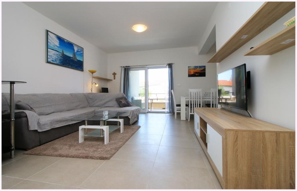 Nowo wyremontowany komfortowy apartament w Primosten z dwoma oddzielnymi pokojami i dużym tarasem o powierzchni 20 m2. Wyposażony w zmywarkę i pralkę. Klimatyzacja, telewizja, wifi. 250 m od centrum Primosten i plaży.