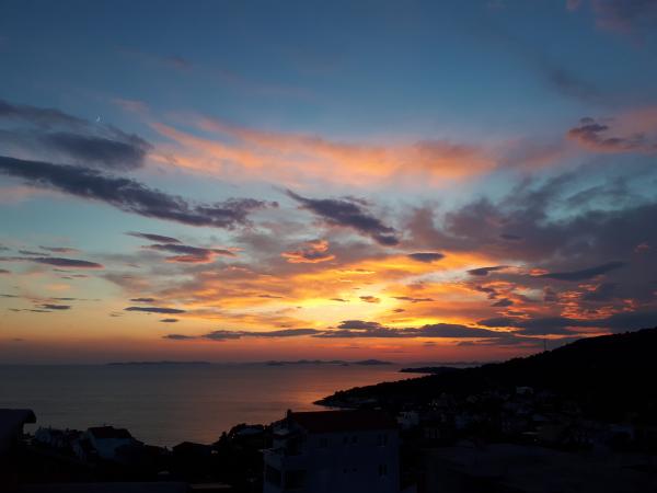 Majówka i po majówce. Piękne i przede wszystkim ciche miejsce . Plaże w odległości 300-400 metrów, są też i knajpki gdzie można spokojnie zjeść podziwiając zachody słońca. Miejsce super na wypoczynek z dziećmi i ze zwierzętami - byliśmy tutaj z dwoma kotami i nie ma żadnego problemu czy też dopłat. Jest wszystko czego potrzebowaliśmy - kuchnia w pełni wyposażona, wifi, Tv, grill, klimatyzacja i w tym okresie pachnące róże przy balkonie. Na przywitanie uśmiech i naleweczki do spróbowania. Gospodarz - bardzo sympatyczny i pomocny (mieliśmy mały problem z autem ale Tata mechanik nam pomógł błyskawicznie). Jesteśmy w Chorwacji po raz trzeci (wcześniej - Tucepi, Igrane -Seline) i cena jaką płacimy za te chwile ciszy i wypoczynku jest najniższa biorąc pod uwagę standardy. Są tu miejsca warte do wypoczynku i ciszy i widoków a w szczególności Gospa od Loreta (w dzien i wieczorem ),. są blisko głównr sklepy: konzum 10 min,, tommy 12 i co najwżniejsze targ rybny (pyszne z grilla) 20 min autkiem więc czego chcieć więcej Bardzo dziękujemy za gościnę