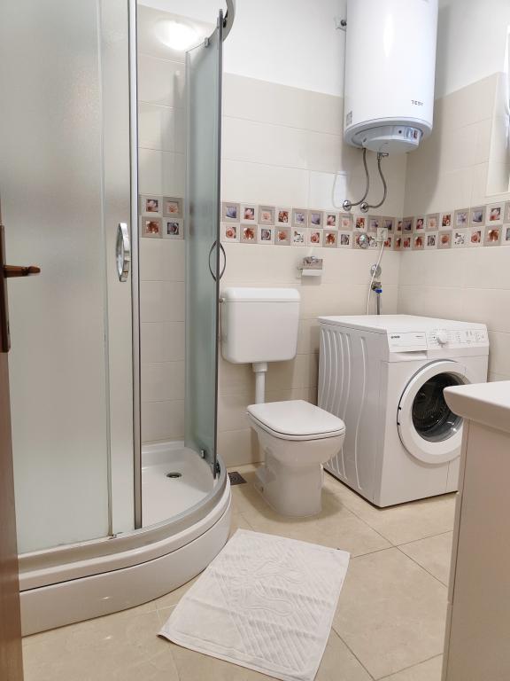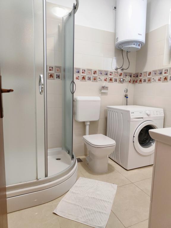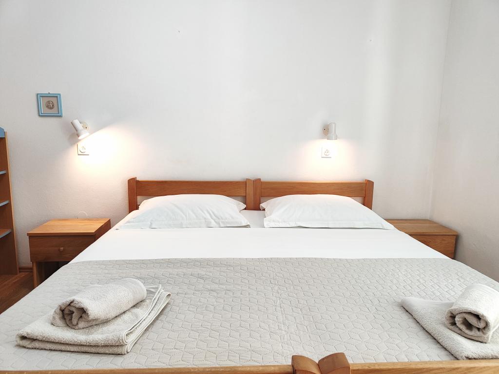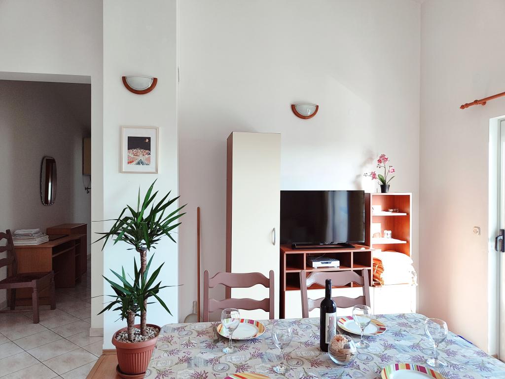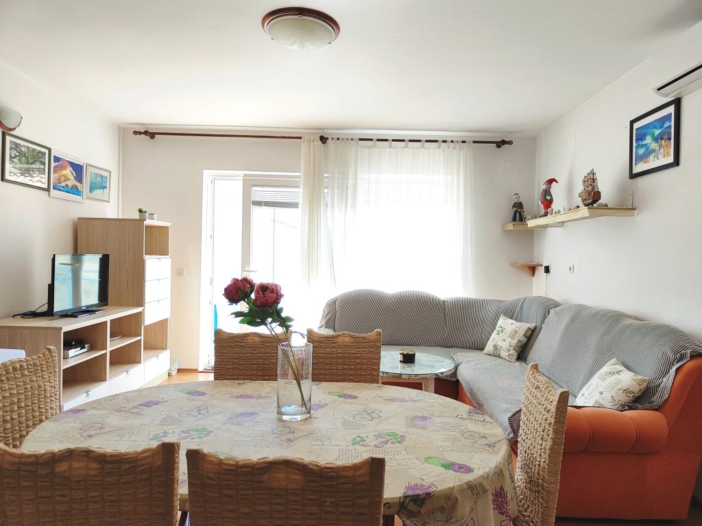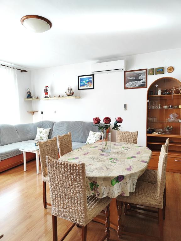Apartament może nie najnowszy ale bardzo czysty i w bardzo dobrym stanie. Bardzo przestronny i dobrze wyposażony. Świetna lokalizacja, bardzo blisko plaży i centrum miasteczka. Bardzo życzliwi i chętni do pomocy gospodarze u których można kupić świetne domowe wino i rakiję.