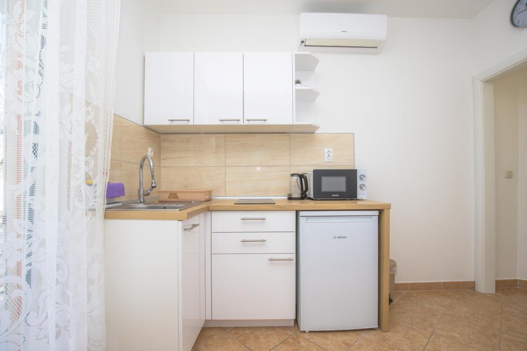 Mieszkaliśmy w apartamencie A4 przez 2 tygodnie (2 osoby dorosłe + 3 dzieci) i mogę go tylko polecić. Jest bardzo czysty, ma 2 wygodne sypialnie, w pełni wyposażoną kuchnię, salon z sofą i telewizorem oraz balkon, na którym można delektować się kawą i widokiem na morze. Obiekt położony jest w spokojnej okolicy, w odległości 2 stóp znajduje się plaża (z barem), a w zasięgu spaceru znajduje się wiele innych plaż. W odległości około 5 minut jazdy samochodem znajduje się kilka targowisk. Gospodarze są bardzo mili, zawsze pomocni i produkują oliwę z oliwek najwyższej jakości