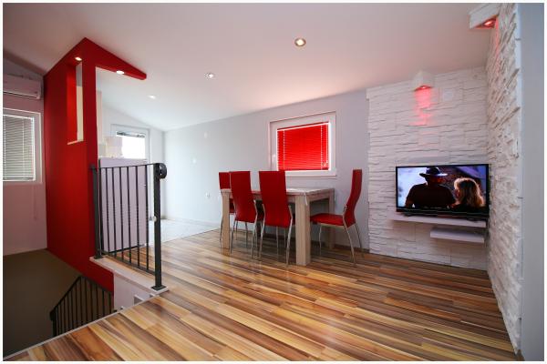 Duży, przestronny apartament, dobrze wyposażony. Położony na końcu miasteczka, mimo ulicy cisza i spokój. W pobliżu 2 fantastyczne, podmiejskie plaże. Ale najważniejsi są ludzie :) Państwo Huljev :) W tym roku byliśmy u nich już 5 raz i nie ostatni, czujemy się tam fantastycznie. Polecam !!!