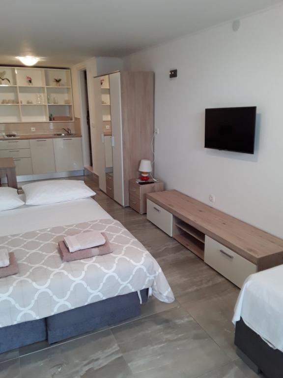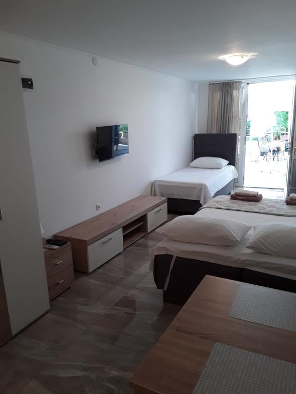 W pełni wyposażone apartamenty w spokojnej okolicy w drugim rzędzie do morza, zaledwie 100 metrów od plaży. Apartamenty mają wszystko, aby cieszyć się wakacjami i czuć się jak w domu, parking znajduje się przed domem. Apartamenty znajdują się 28 km od Sibenika i 35 km od Parku Narodowego i 30 km od lotniska Split (Resnik).