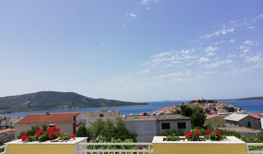 Wygodne i ładnie urządzone mieszkanie, położone na niewielkim wzniesieniu nad drogą u szczeniaka Primo. Z apartamentu i tarasu roztacza się piękny widok na morze i Stare Miasto. To tylko 8 minut spacerem od plaży, również od centrum miasta. Mieszkanie składa się z sypialni dla dwóch osób, kuchni z salonem, łazienki i tarasu. W salonie znajduje się rozkładana sofa dla dwóch osób. Odpowiedni dla małżeństwa z małymi dziećmi. Mieszkanie znajduje się na 1. piętrze.