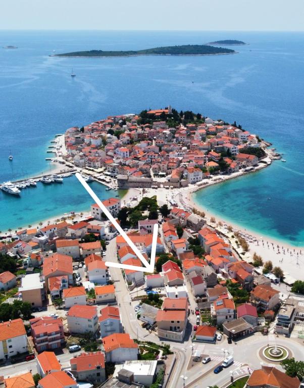 Nowoczesny dwupiętrowy apartament Miamare w Primosten znajduje się 100 metrów od centrum miasta i plaży (1-2 min pieszo).Składa się z kuchni, salonu i toalety na parterze oraz dwóch sypialni i łazienki na pierwszym podłoga. Jest wyposażony w trzy klimatyzatory i łącze internetowe.Przed apartamentem znajduje się bezpłatne miejsce parkingowe.Wszystkie niezbędne obiekty znajdują się w bezpośrednim sąsiedztwie w odległości mniejszej niż 100m (sklep, apteka, market, restauracje, masarnia) , Poczta...).