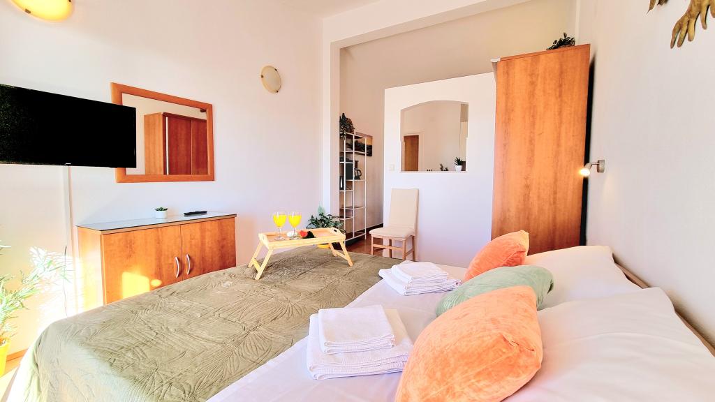 Spędziliśmy bardzo udany pobyt w apartamencie w Primošten. Wszystko było zgodne z opisem – czyste i zadbane pokoje, idealne dla dwóch osób. Kuchnia była w miarę dobrze wyposażona, co pozwalało na przygotowanie prostych posiłków. Dużym plusem było dostępne miejsce parkingowe oraz szybki i stabilny internet. Lokalizacja jest świetna – bardzo blisko do plaży, sklepu i piekarni, więc wszystko mieliśmy pod ręką. Właściciele byli bardzo mili i pomocni, zawsze dostępni w razie potrzeby, ale jednocześnie dyskretni. To idealne miejsce na spokojny wypoczynek nad morzem – chętnie wrócimy!