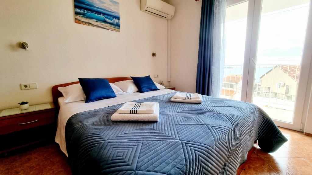 Doskonałe zakwaterowanie z doskonałym widokiem na stare miasto i morze. Jest czysty, spokojny, dobrze wyposażony w wygodne łóżko i posiada balkon, z którego roztacza się wspaniały widok. Klimatyzacja sprawia, że pobyt staje się jeszcze przyjemniejszy. Gospodarze są mili i pomocni, dostępny jest parking, a lokalizacja jest idealna, blisko zarówno plaży, jak i starego miasta. Wysoce polecany!