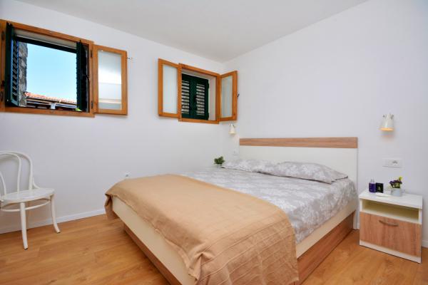 Nowocześnie urządzony apartament w samym sercu starego miasta Primošten. Zapomnij o prowadzeniu samochodu, wszystko czego potrzebujesz do przyjemnego wypoczynku znajduje się w odległości 200 m. Piękne, krystalicznie czyste plaże znajdują się 50 metrów od apartamentu, a w bezpośrednim sąsiedztwie (10 metrów) znajdują się liczne sklepy i restauracje, kawiarnie i inne obiekty użyteczności publicznej. W cenę pobytu wliczone jest miejsce parkingowe, a transfer do apartamentu w centrum odbywa się elektrycznym papamobilem. Dwa apartamenty można połączyć w jeden duży, dwupiętrowy apartament, co zapewni komfortowe zakwaterowanie dla maks. 6 (sześć) osób.
