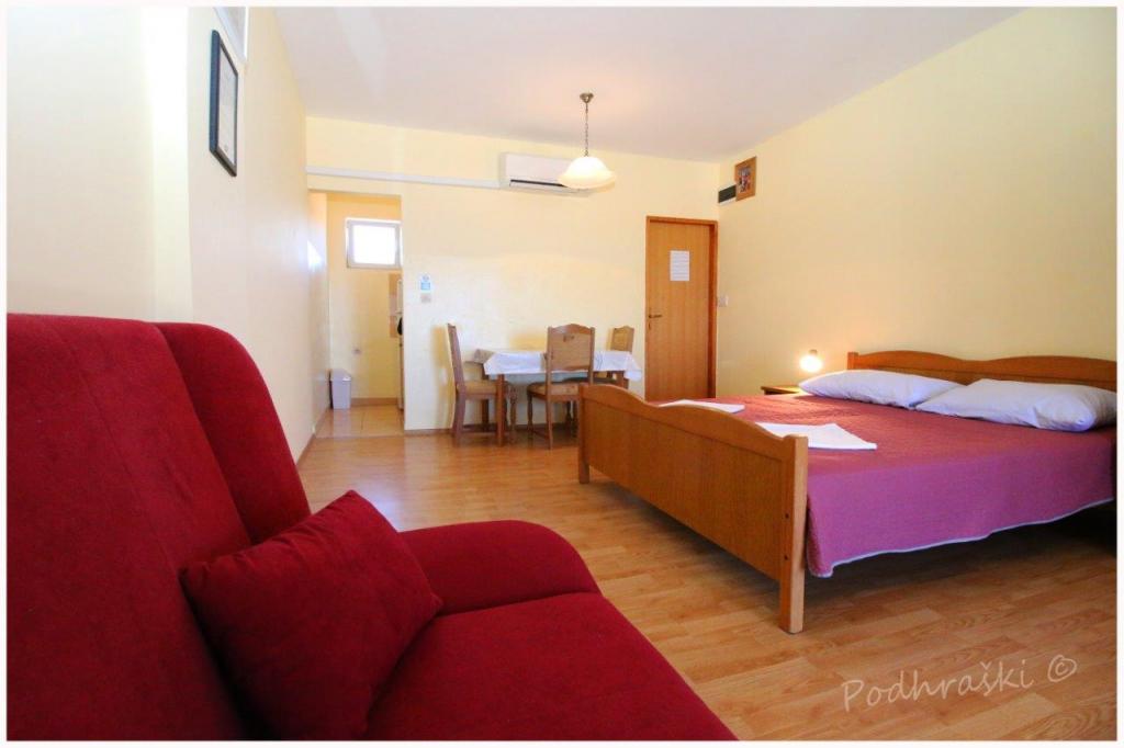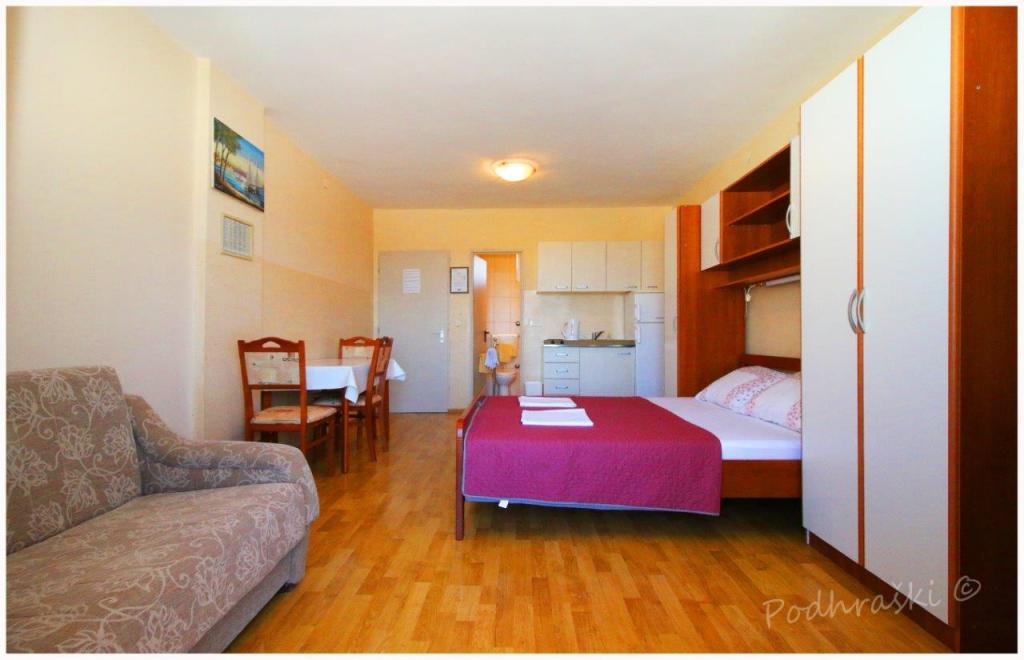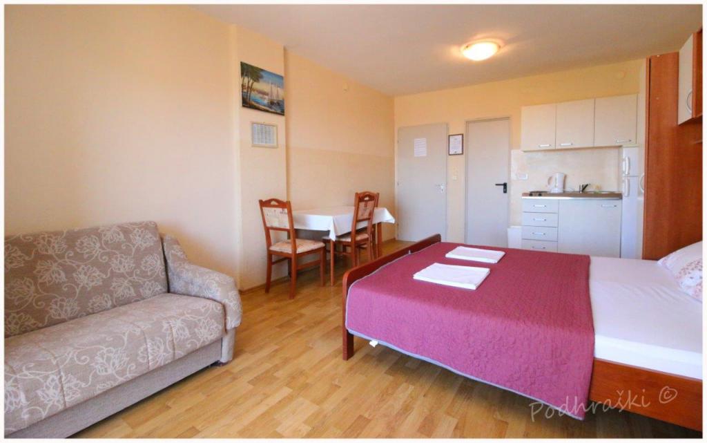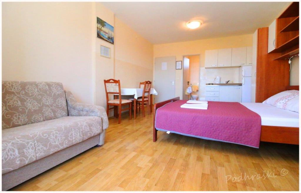 Opłata jest wliczone w cenę.Wynająć 4 apartamenty typu studio w Primosten w spokojnym miejscu, 4min pieszo od Rynku Głównego, 2-3min spacerem od plaży. Plaże są piaszczyste lasy sosnowe. Pojemność 2 osoby dorosłe i 2 dzieci na mieszkanie Apartamenty są nowe, z nowymi meblami i znajdują się w nowym domu. Cena obejmuje Wiata parkingowa, korzystanie z podwórza, klimatyzatory i grill, a także podatków lokalnych. Każdy apartament ma internetu (WiFi), lodówka, telewizor LCD, klimatyzację, podwójne łóżko, sofa, łazienka, kuchnia, balkon, etc ...