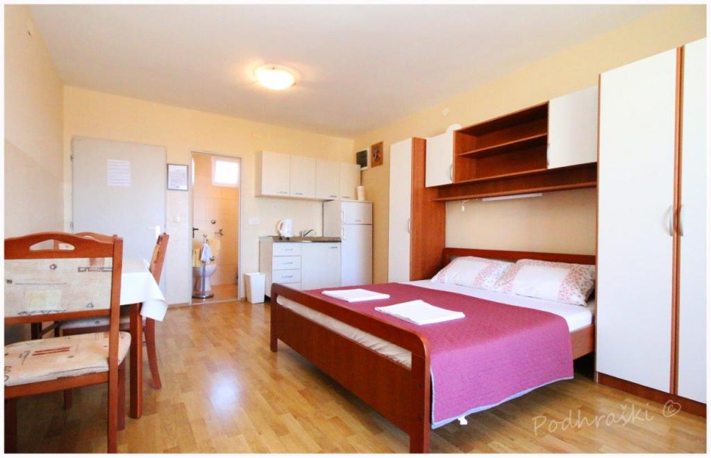 Czytaj więcej KwaterWynająć 4 apartamenty typu studio w Primosten w spokojnym miejscu, 4min pieszo od Rynku Głównego, 2-3min spacerem od plaży. Plaże są piaszczyste lasy sosnowe. Pojemność 2 osoby dorosłe i 2 dzieci na mieszkanie Apartamenty są nowe, z nowymi meblami i znajdują się w nowym domu. Cena obejmuje Wiata parkingowa, korzystanie z podwórza, klimatyzatory i grill, a także podatków lokalnych. Każdy apartament ma internetu (WiFi), lodówka, telewizor LCD, klimatyzację, podwójne łóżko, sofa, łazienka, kuchnia, balkon, etc ...