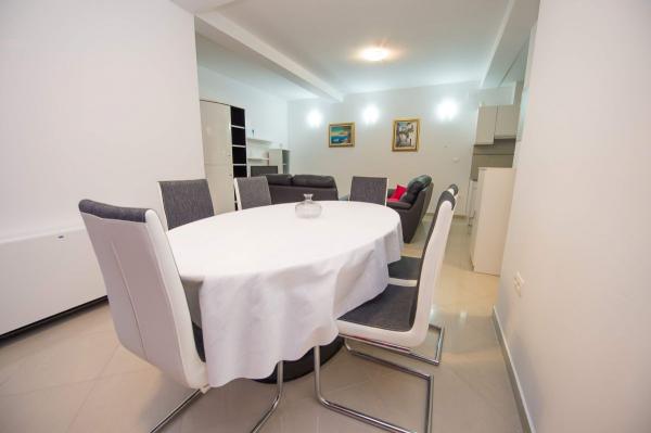 Ekskluzywna willa Emma, nowy kamienny dom, bezpośrednio nad morzem. Położony w Primošten, w spokojnej zatoce Porat. Zaledwie kilka minut spacerem prowadzi na żwirowe plaże i centrum. Wszystkie luksusowe apartamenty posiadają duży zadaszony taras z pięknym widokiem na morze. W domu znajduje się 5 apartamentów: Apartamenty numer 1, 2, 3 mają 2 sypialnie, pokój dzienny z łóżkiem piętrowym, 1 łazienkę. Apartamenty numer 4 mają 1 pokój, pokój dzienny z łóżkiem piętrowym, 1 łazienka. Apartamenty numer 5 mają 3 pokoje, pokój dzienny z łóżkiem piętrowym, 2 łazienki. Każdy apartament ma własne wejście i parking. Klimatyzacja w każdym pokoju i pokoju dziennym. Nowoczesny sprzęt, w pełni wyposażona kuchnia, łazienka, telewizja satelitarna / TV. Idealny czas przyjazdu 14:00 i wyjazdu 10:00.