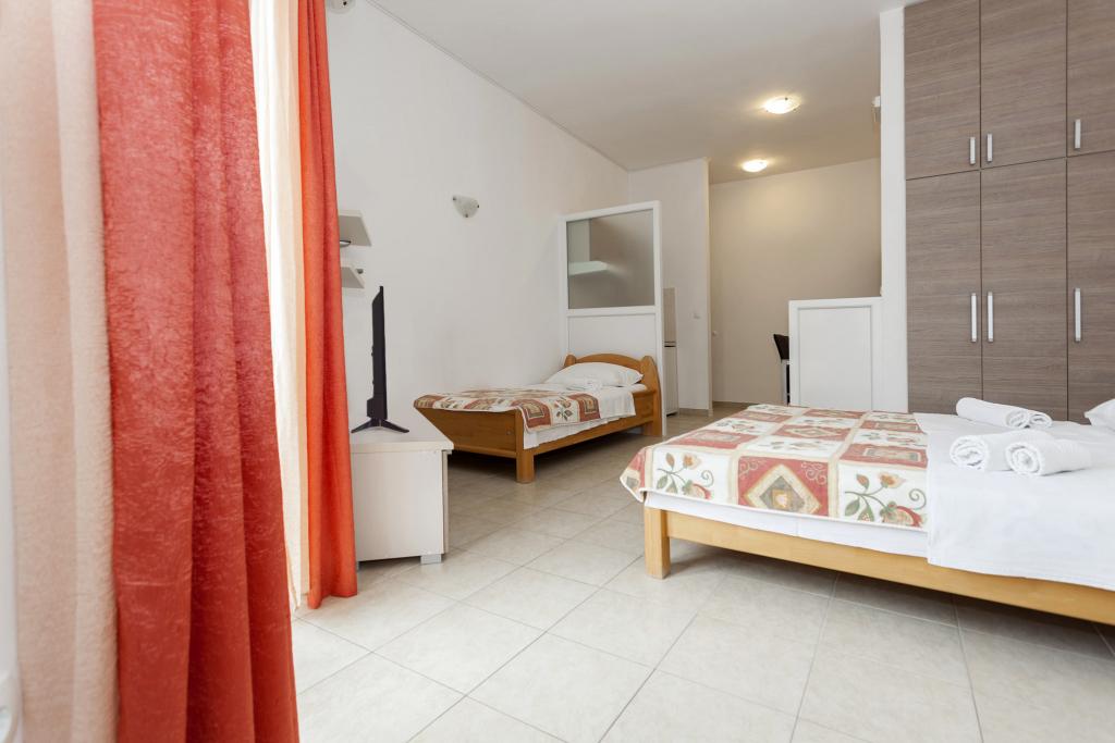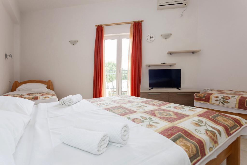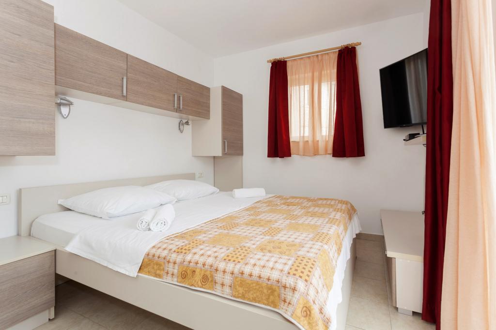 Apartamenty położone w idealnym miejscu bo wszędzie blisko (2 długie plaże, sklepy, inf. turystyczna, stacja benzynowa, kantor, apteka, piekarnia, mięsny) a jednocześnie nie przy deptaku, więc wieczorami jest cisza. Pokoje czyste, dobrze wyposazone w ładne meble, łóżka duże, dużo szafek, balokony, w łazience nawet pralka. Parking przed budynkiem. Oczywiście polecam Primosten, plaże bardzo długie wokół całego cypla, wiec nawet jak jest dużo ludzi to każdy znajdzie wystarczającą ilość miejsca na plazy dla siebie. Apartamenty są warte polecenia.