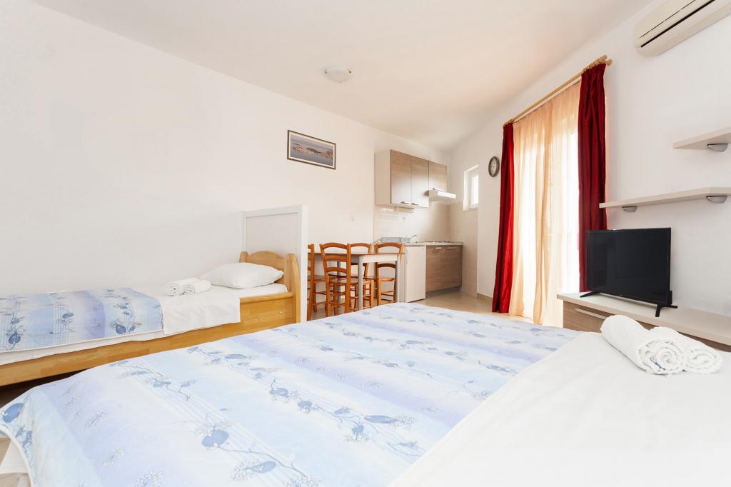 Jesteśmy bardzo zadowoleni z pobytu i z apartamentu. Apartament - wszystko w bardzo dobrym stanie, czysto, zadbanie, świeżo, wygodne łóżko, klimatyzacja. Dobra lokalizacja - bardzo blisko do plaży a jednak nie w tłumie przewalających się turystów. Urocze miasteczko, doskonała baza wypadowa w inne rejony jak Schibenik czy Trogir. Właściciel uprzejmy, pomaga niezorientowanym. Polecam.