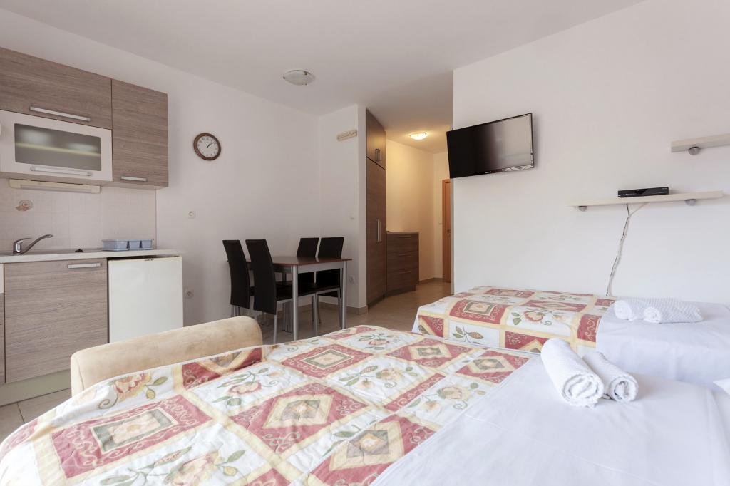 Mieszkanie jest bardzo dobrze wyposażone, przestronne, czyste i uporządkowane. W każdym apartamencie znajduje się pralka. Właściciel jest bardzo przyjazny i pomocny. Lokalizacja jest doskonała. W pobliżu (max 10 min) posiada kilka plaż, restauracji, sklepów. Parking przed apartamentów, bezpieczne i zawsze gwarantowane. Naszym jedynym problemem było Skrobanie łóżko.