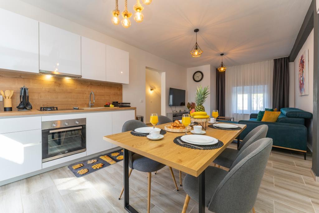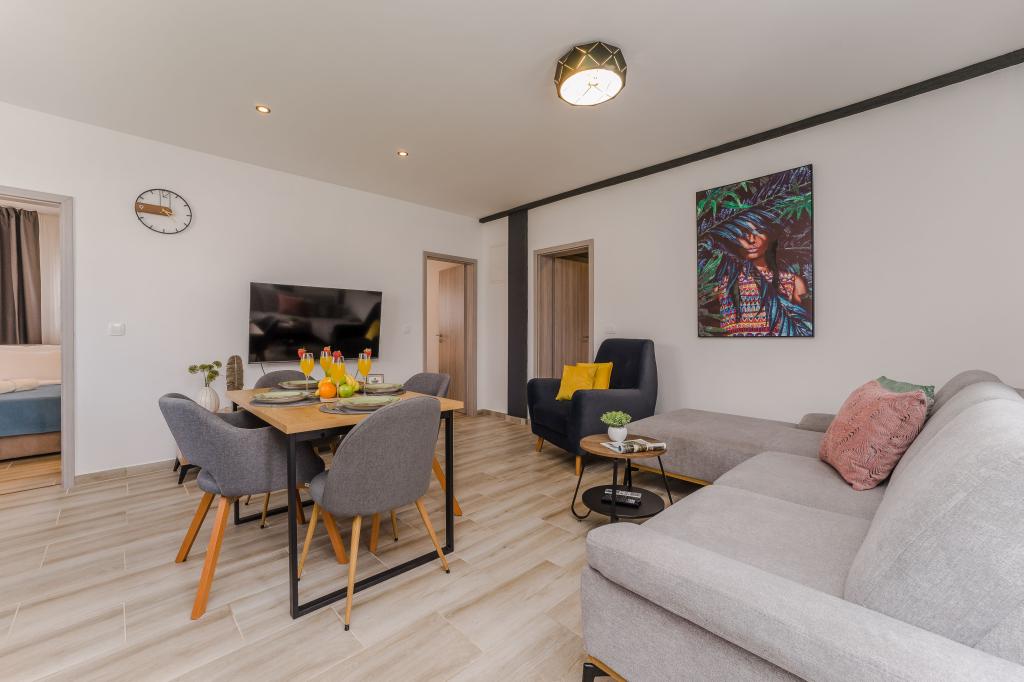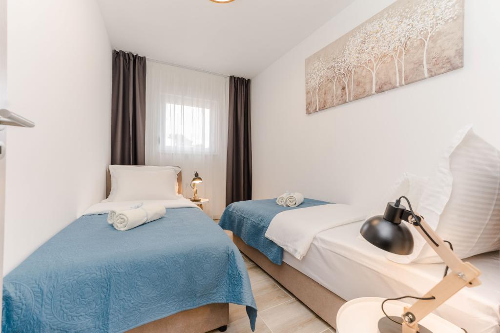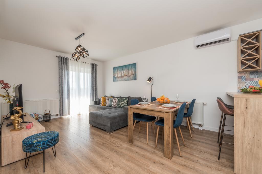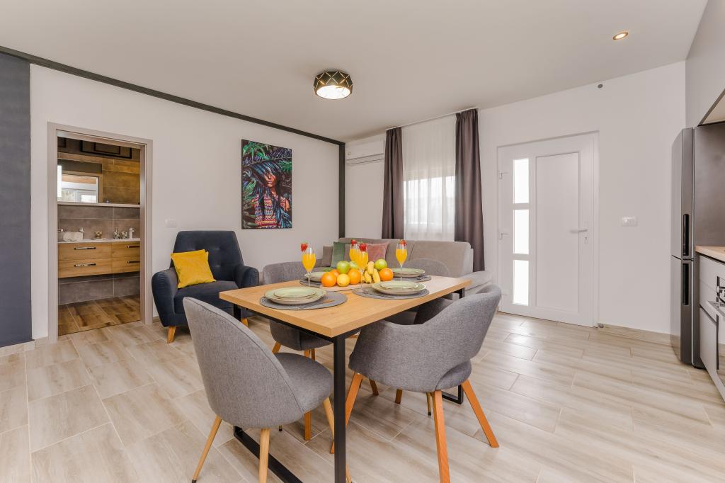 Apartamenty DMarie znajdują się w centrum Privlaka, 250 metrów od plaży. Mieszkanie znajduje się na pierwszym piętrze domu jest w pełni wyposażone i składa się z 3 sypialni, łazienki z wc, kuchni, salonu oraz 2 tarasów. W kuchni znajduje się lodówko-zamrażarka, zmywarka, piekarnik i płyta grzejna. Apartamenty posiadają WiFi, klimatyzację, bezpłatny parking oraz pakiet EVO TV. Podwórko wokół domu jest rozłożone na ponad 1000 metrów kwadratowych, a z boku domu znajduje się grill, z którego goście mogą korzystać. W promieniu 300 m znajdują się: restauracje, sklepy, kawiarnie, poczta, apteka, boiska do piłki nożnej, koszykówki i siatkówki, pogotowie ratunkowe oraz park rozrywki. Apartamenty znajdują się 20 km od Zadaru i 25 km od lotniska Zemunik, 8 km od wyspy Vir, 5 km od miasta Nin i plaży z leczniczym błotem, 7 km od Zaton Holiday Resort. Odległość do Novalji wynosi 75 km, Fun Park Biograd 50 km, a Solaris Aqua Park 95 km. Privlaka to idealne miejsce na turystykę rodzinną ze względu na piaszczyste zatoczki i tereny zielone, które nadają się do spacerów i wypoczynku. Witamy!!!!!
