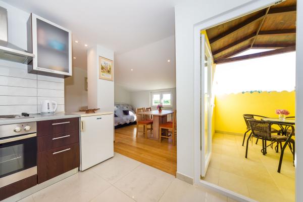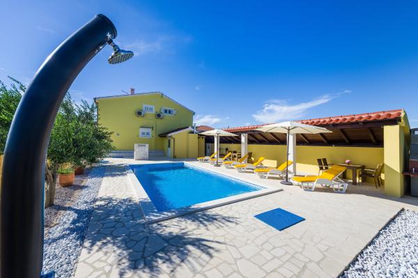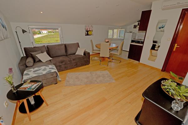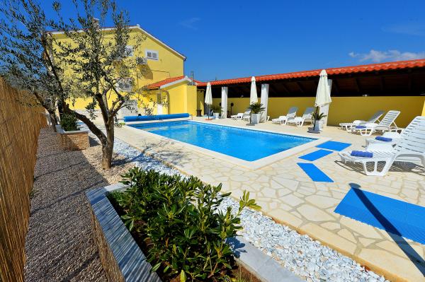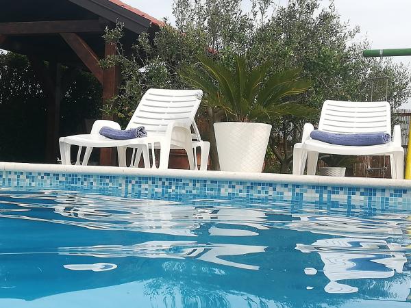 Nowo wyremontowane apartamenty z nowym basenem w Privlaka i widokiem na morze. Blisko do plaży i centrum. Basen ma 8 x 4 metry z leżakami, sprzętem fitness, sprzętem dla dzieci (trampolina, huśtawki przy basenie), piłkarzykami i muzyką na basenie według życzeń gości. Drewniana nowo wybudowana altana (pergola) z basenem. To samo dotyczy wielkości apartamentów 1 i 2. Oba apartamenty mają dobre dodatkowe łóżko. Zwierzęta są dozwolone. Możliwość wynajęcia obu apartamentów jednocześnie dla 8 osób lub dwóch dorosłych par z dziećmi. Apartamenty z basenem, czynny w sezonie odkryty basen, ogród, centrum fitness, piłkarzyki i wspólny salon w Privlaka. Obiekt oferuje wspólną kuchnię i bezpłatny bezprzewodowy dostęp do Internetu. Pokoje są klimatyzowane i dysponują częścią wypoczynkową, telewizorem z płaskim ekranem i dostępem do kanałów telewizji satelitarnej, kuchnią, jadalnią oraz łazienką z suszarką do włosów i prysznicem. Wszystkie pokoje wyposażone są w szafę i czajnik. Simoni