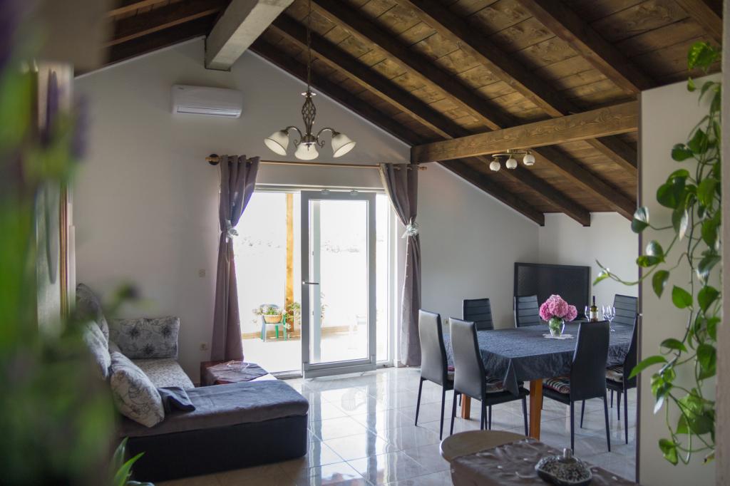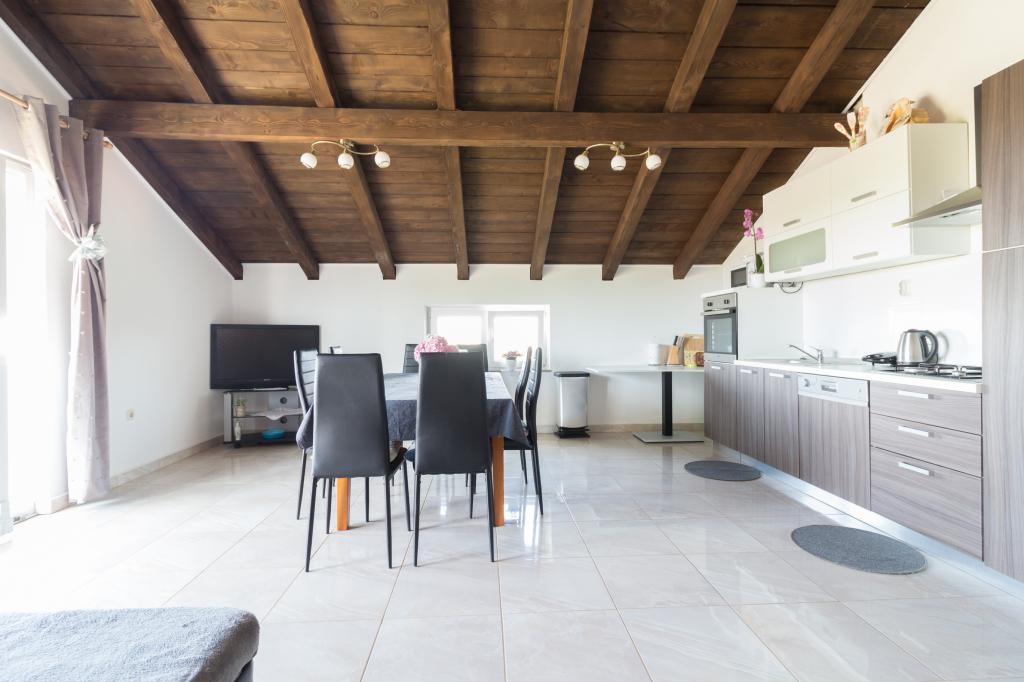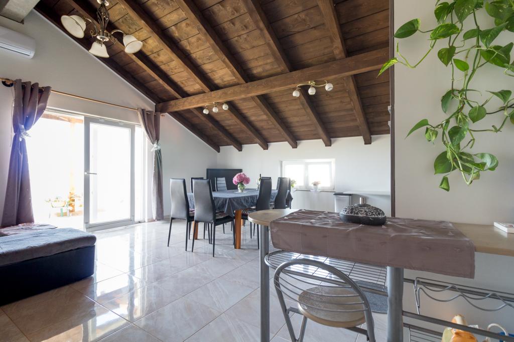 Położony w spokojnej miejscowości Privlaka, zaledwie 600 metrów od morza i piaszczystych plaż, Apartament Tia oferuje idealne połączenie komfortu, przestrzeni i śródziemnomorskiego uroku. Ten przestronny apartament o powierzchni 100 m² jest idealny dla rodzin i grup do 8 osób (7+1) i oferuje gościom trzy wygodne sypialnie, w pełni wyposażoną kuchnię, przestronny salon oraz duży balkon z pięknym widokiem na okoliczną przyrodę. Apartament jest przyjazny zwierzętom, więc Twoje pupile również są mile widziane! Do dyspozycji Gości jest bezpłatne Wi-Fi, prywatny parking i wszystko, czego potrzebujesz do beztroskiego wypoczynku. Ciesz się ciszą, zielenią i świeżym powietrzem, będąc w idealnej lokalizacji – zaledwie 2 km od zabytkowego miasta Nin i 25 km od Zadaru, miasta bogatego w ofertę kulturalną i gastronomiczną.