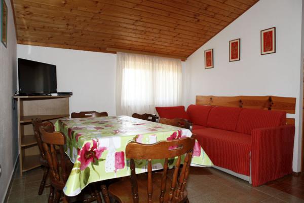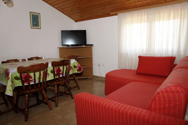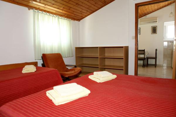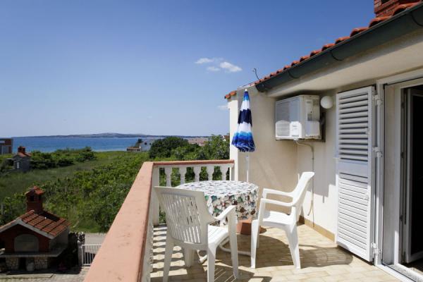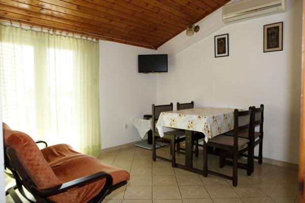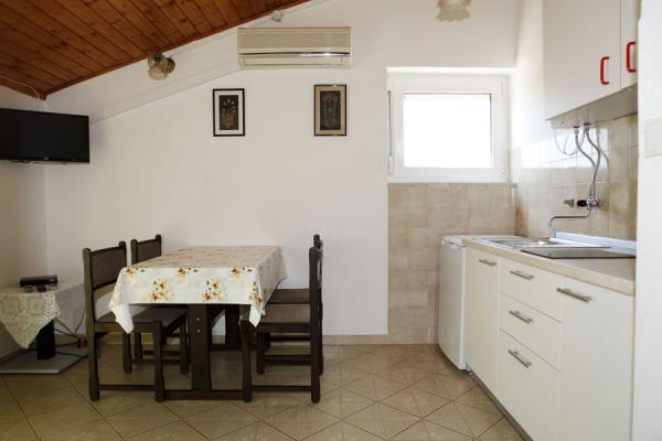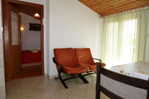 Apartamenty Soline położone są w wiosce rybackiej Zadaru, 25 km na północny zachód od Zadaru. Dom położony jest w spokojnej części Zadaru, w otoczeniu przyrody, z widokiem na morze na południu i wschodzie, a morza i gór Velebit od strony północnej. Obszar ten słynie z piaszczystych plaż i czystych wodach płytkich, idealne dla małych dzieci. Dom znajduje się 5 minut spacerem od piaszczystej plaży, 10 minut do mniejszych sklepów, a pół godziny spacerem do centrum. W ogrodzie jest ładnie zagospodarowany dziedziniec z dużą ilością kwiatów, trawników i gospodarzy ogród. W podwórku domu grill i zadaszony parking, które są dostępne dla gości. Apartamenty przeznaczone są dla pobytów na 3 do 5 osób (40m2 i 60m2). Apartament 2 1 Opis: 40 m², pierwsze piętro pokój z łóżkiem dla 2 osób dodatkowe łóżko dla 1 osoby kuchnia, jadalnia łazienką / WC Telewizja satelitarna, klimatyzacja balkon, meble ogrodowe, parasol pościel, ręczniki, sztućce i gotowania, suszarka do włosów