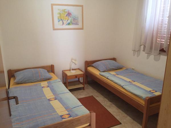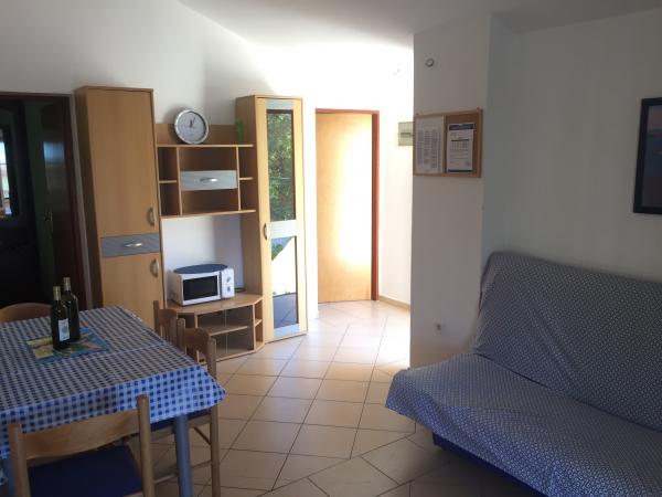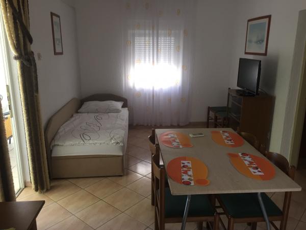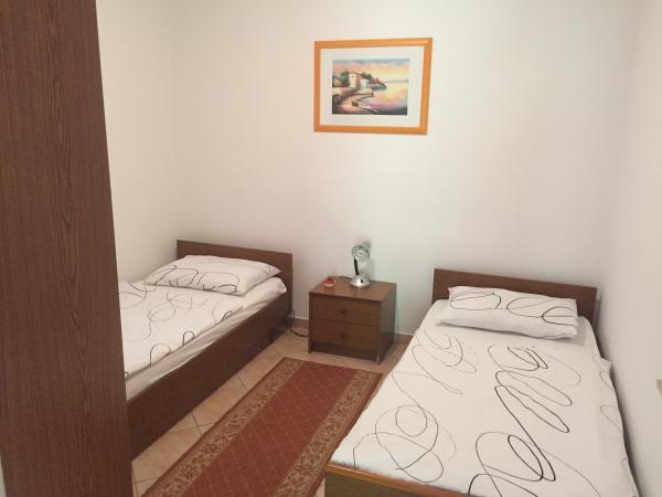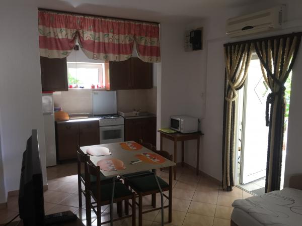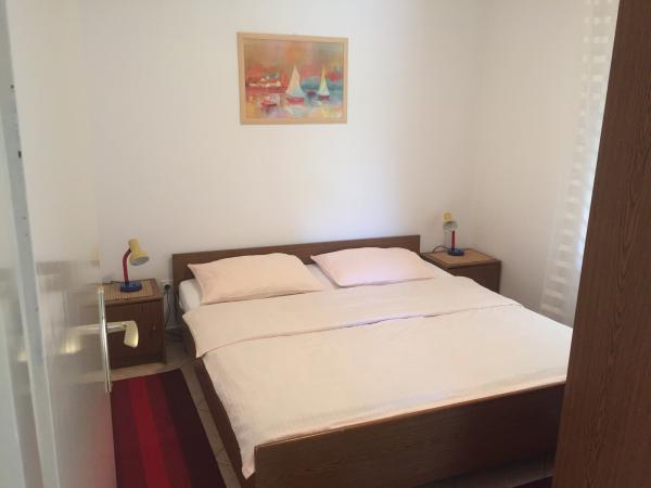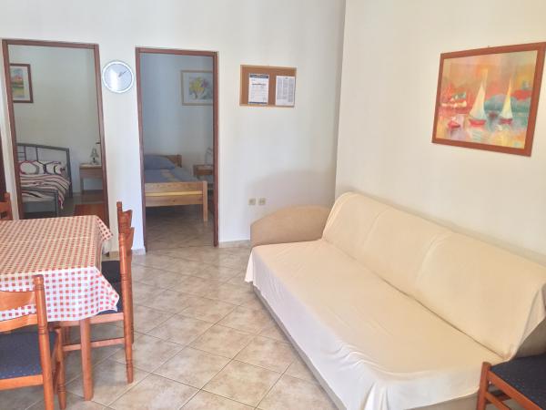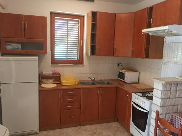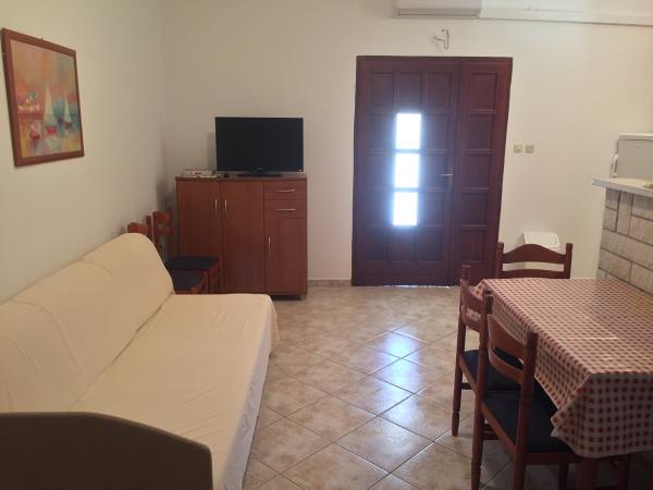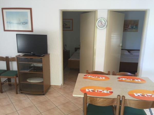 Zarezerwowaliśmy apartament nr 2. Schludne i czyste mieszkanie, z wszystko, czego potrzebujesz. Mają nawet własne miejsce parkingowe, co było dla nas bardzo ważne, a plaża jest 30 metrów daleko, co było absolutnie fantastyczne. Na podwórku właściciel ma mały gulasz z brandy, które są świetne. Idealny dla rodziny z małymi dziećmi.