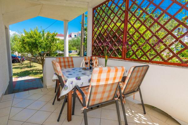 W pełni wyposażone apartamenty w cichej okolicy Privlaka, położone 300 m od morza, z dużym podwórkiem. Apartamenty posiadają dwie duże sypialnie, łazienkę, kuchnię, duży taras i balkon. Przed domem las sosnowy, niedaleko dworca autobusowego.
