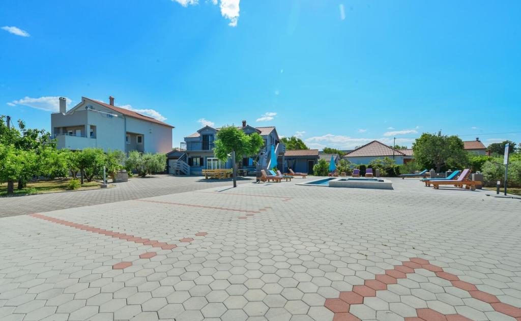 Apartamenty znajdują się 300 m od morza. Znajdują się w zacisznym miejscu, w otoczeniu drzew oliwnych, basen, jacuzzi, grill, pokój gier z rzutkami i piłkarzykami. Duży ogród, ogrodzony...