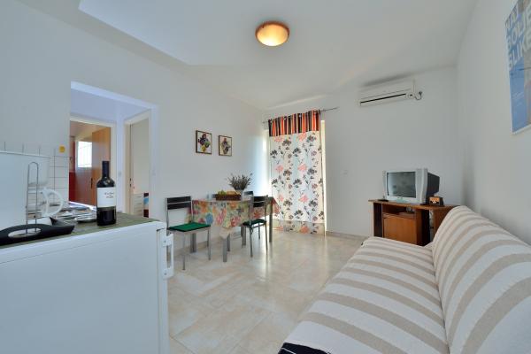 Właściciel pomocny. Apartamenty wyposażone we wszystko co niezbędne. Plaża jest stosunkowo blisko centrum i portu, około 1,5 km. Blisko do miejsca gdzie sąsiedzi sprzedają owoce, warzywa, ryby i wino. Niestety daleko mu do większych sklepów. Ale budują duży sklep jakieś 200 m od domu, więc będzie lepiej. Polecam to miejsce ze względu na cenę i czystość pokoi. Nadaje się jako baza wypadowa w pobliżu Vir, Ninu i Zadaru oraz stosunkowo blisko Pagu