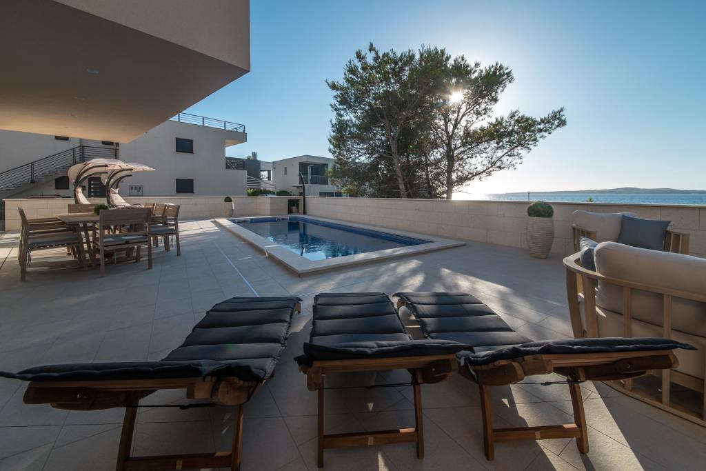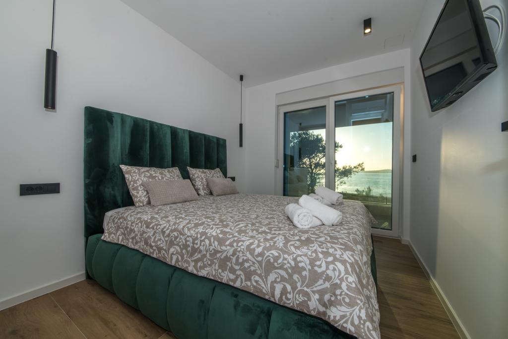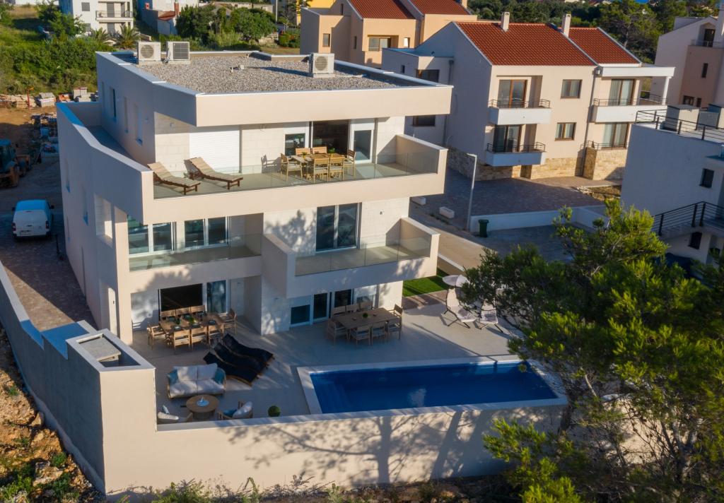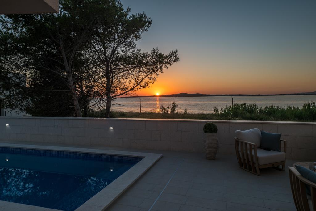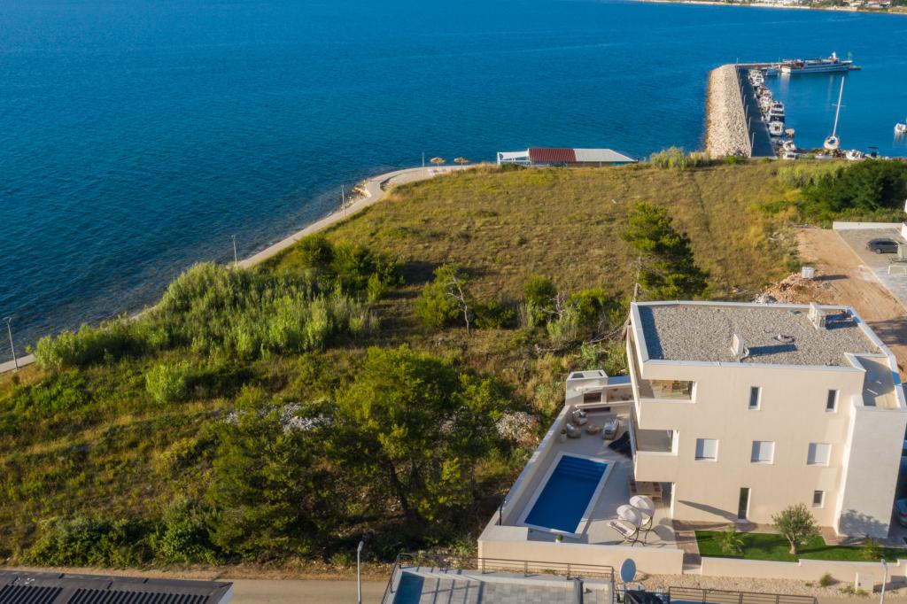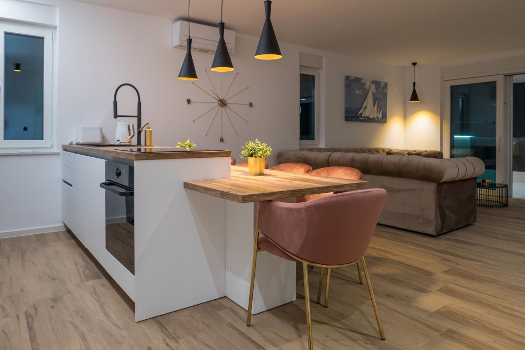 Apartamenty Zitab Luxury znajdują się zaledwie 30 metrów od morza w małej i spokojnej miejscowości Privlaka w regionie Zadar. Nowo wybudowany obiekt z trzema luksusowymi apartamentami oferuje idealne i relaksujące wakacje w pięknie urządzonym otoczeniu z basenem. Idyllą tego obiektu mogą cieszyć się rodziny z dziećmi, a także młode i starsze pary. Lokalizacja samego obiektu jest dużym plusem, ponieważ odległość do innych obiektów takich jak sklepy, restauracje, apteki jest bliska (w promieniu max. 10 minut spacerkiem). Krótko mówiąc, oprócz przestronnych noclegów, na gości czekają wygodne duże łóżka skrzyniowe, klimatyzowane sypialnie, w których każdy pokój ma własną klimatyzację i smart TV, duże i pojemne szafy. Dodatkowo przyciemniane szyby, namagnesowane drzwi wewnętrzne, duża dwuskrzydłowa lodówka z wodą i kostkarką do lodu oraz przestronny i luksusowy zestaw w salonie. Wychodząc na swój taras, popijając kawę nad morzem lub przy basenie, czy to na leżaku, czy na naszej luksusowej sofie, spędzisz niezapomniane chwile